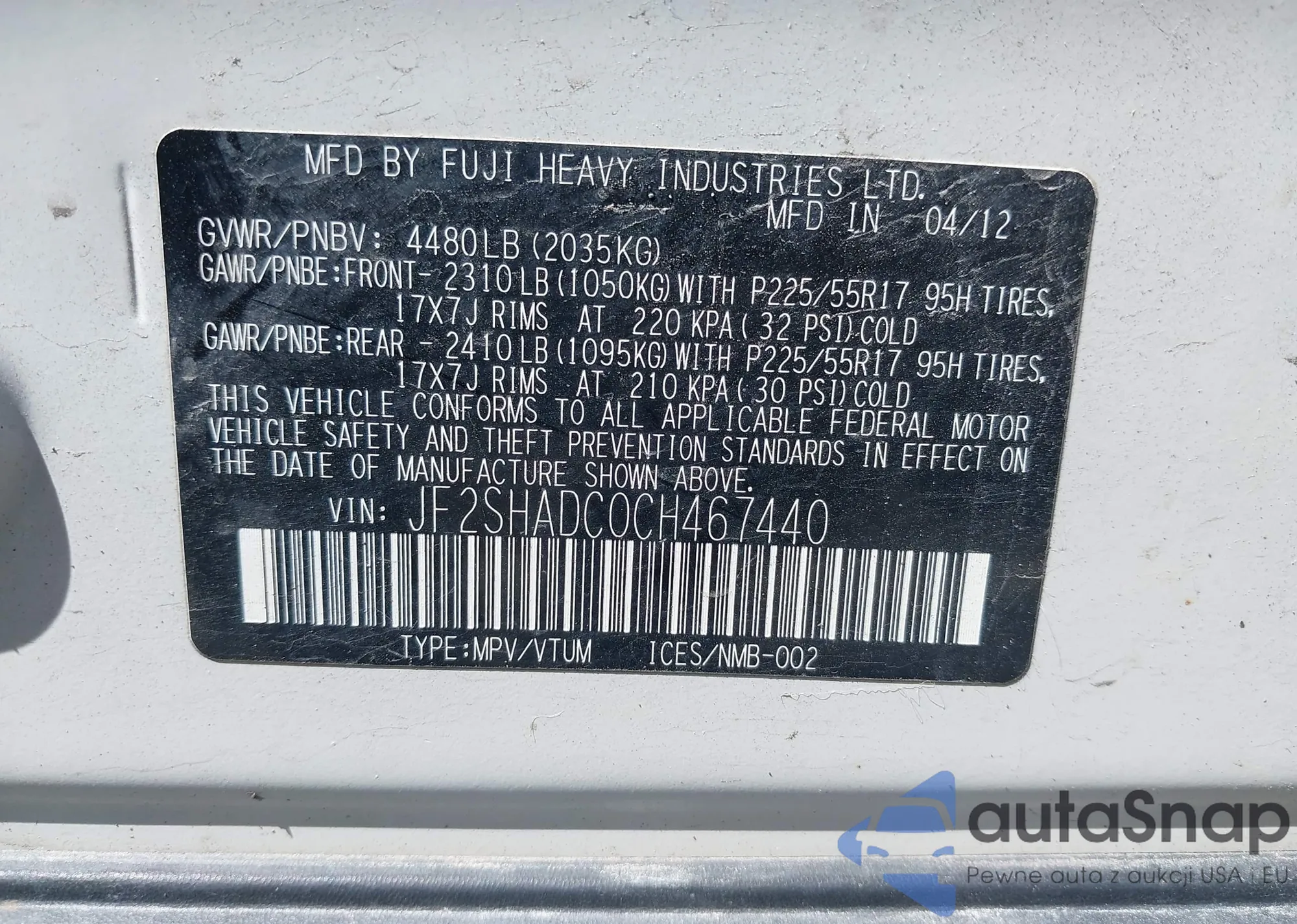 VIN: JF2SHADC0CH467440