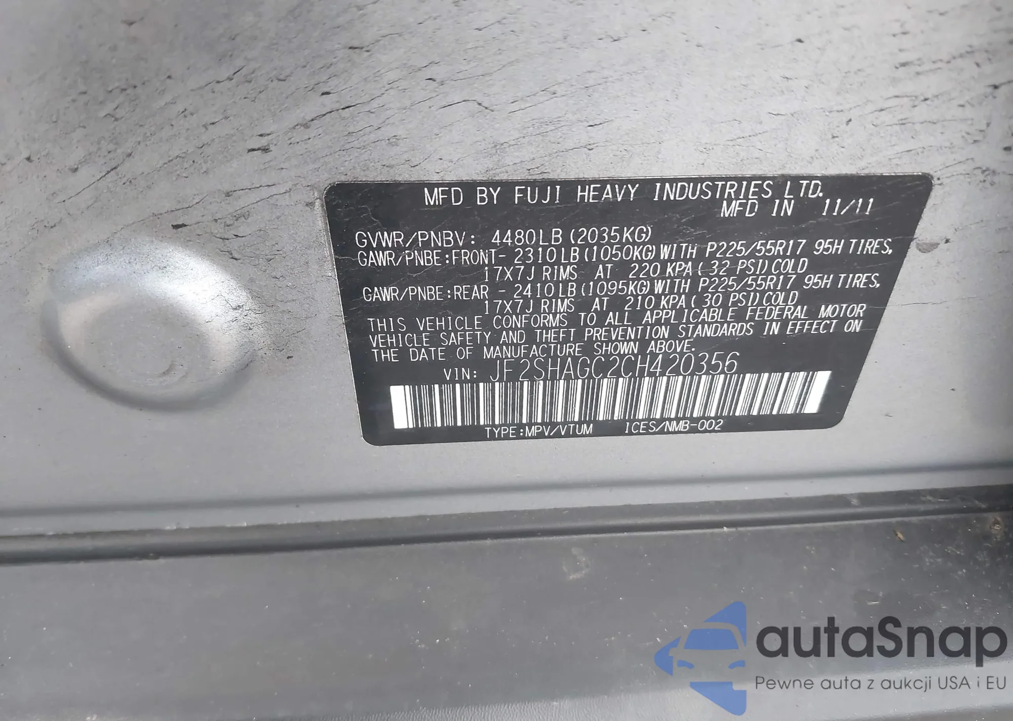 VIN: JF2SHAGC2CH420356