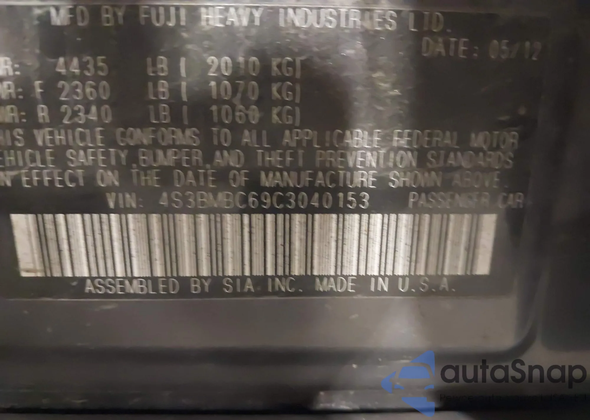 VIN: 4S3BMBC69C3040153