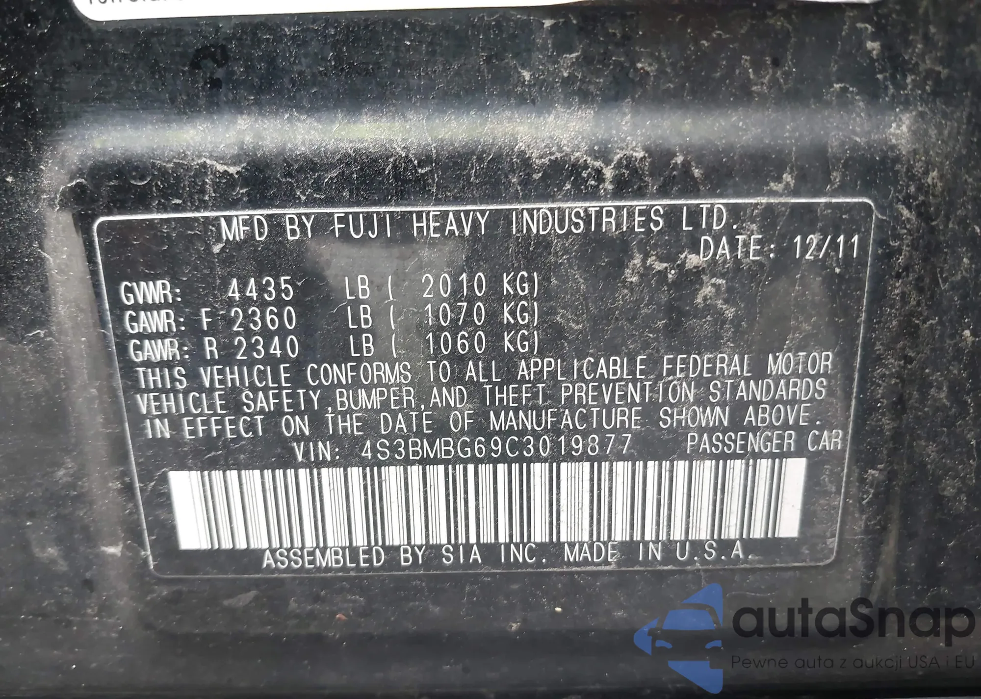 Subaru Legacy 2012 – История автомобиля (продан на IAAI)
