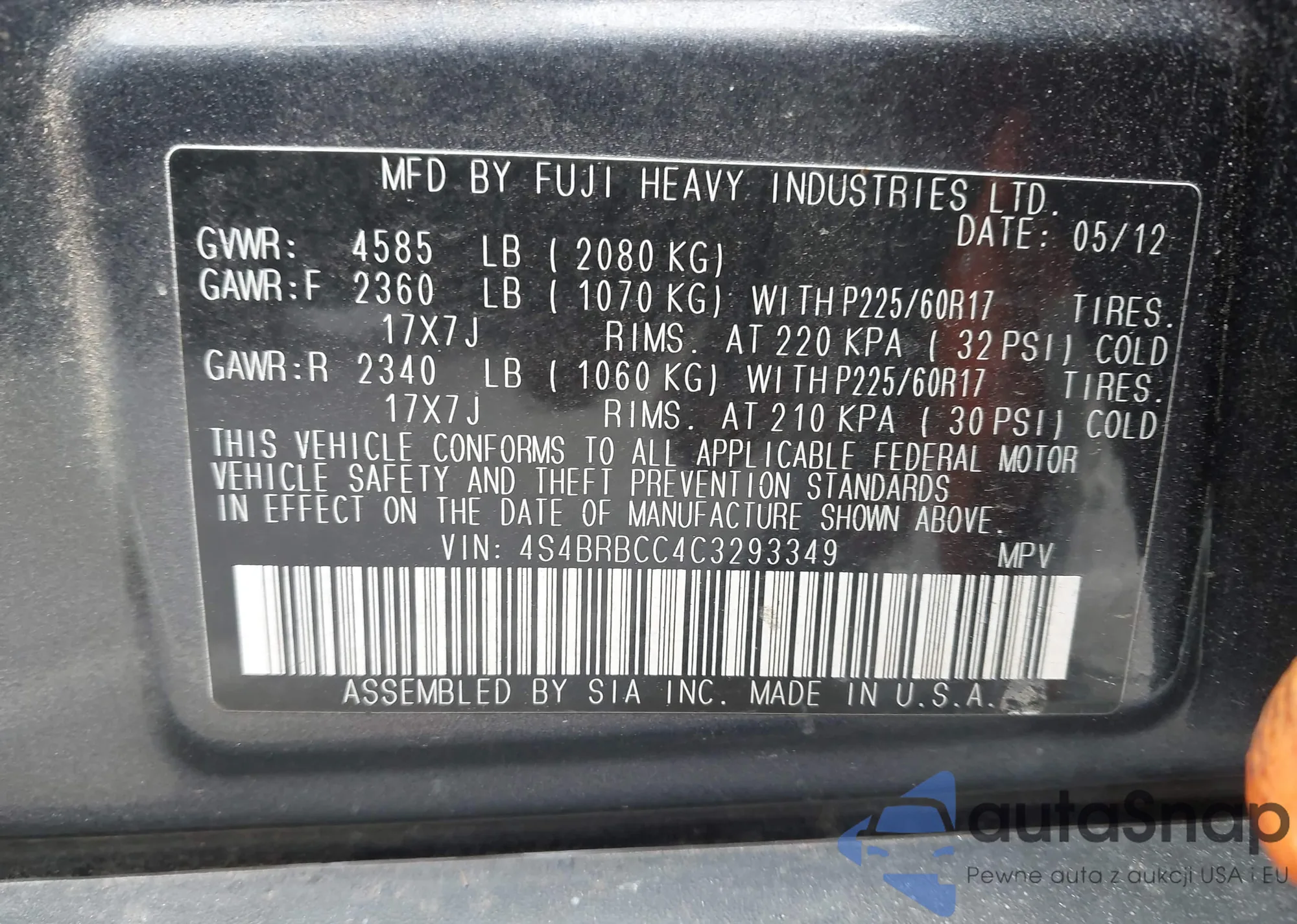 VIN: 4S4BRBCC4C3293349