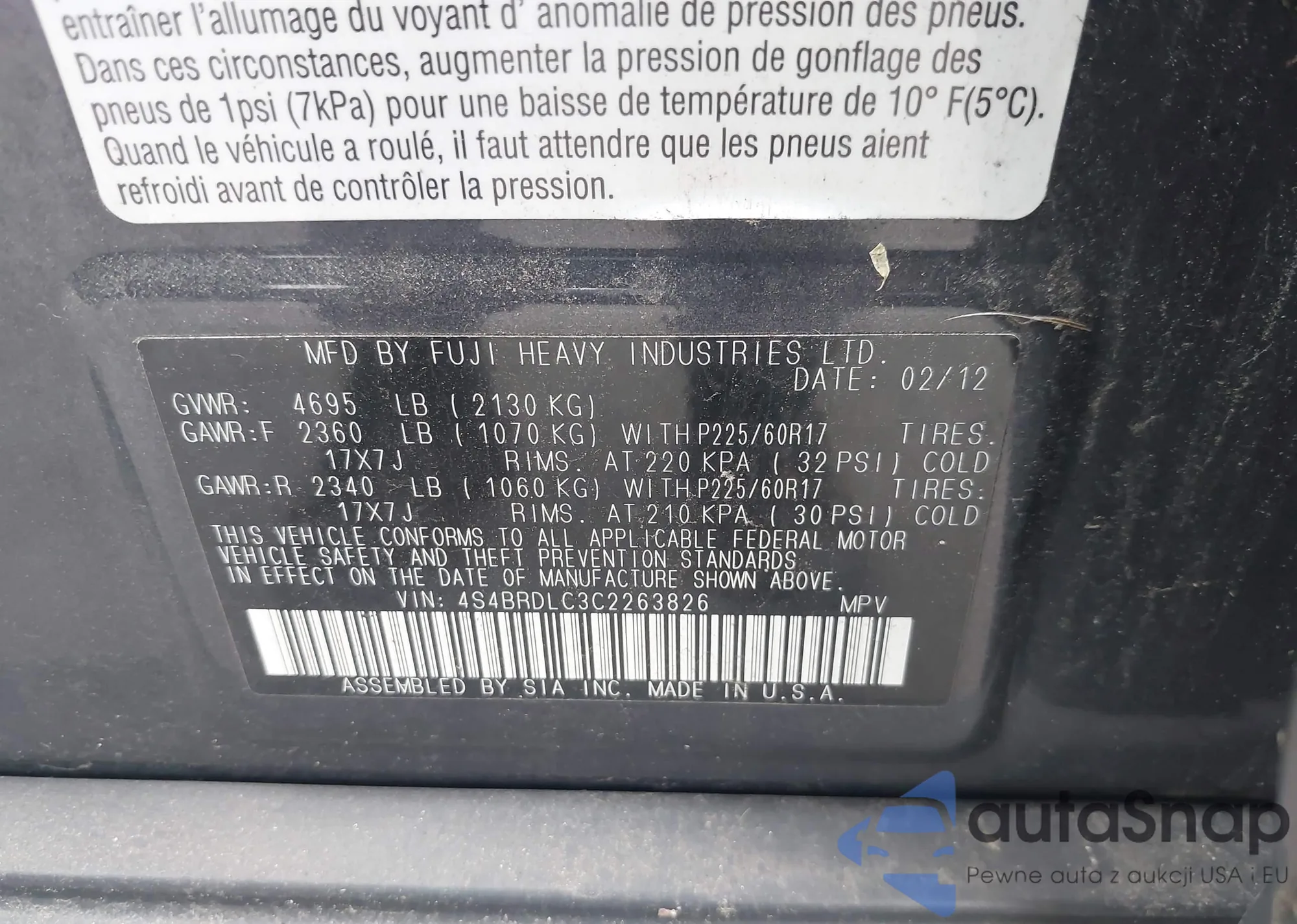 VIN: 4S4BRDLC3C2263826
