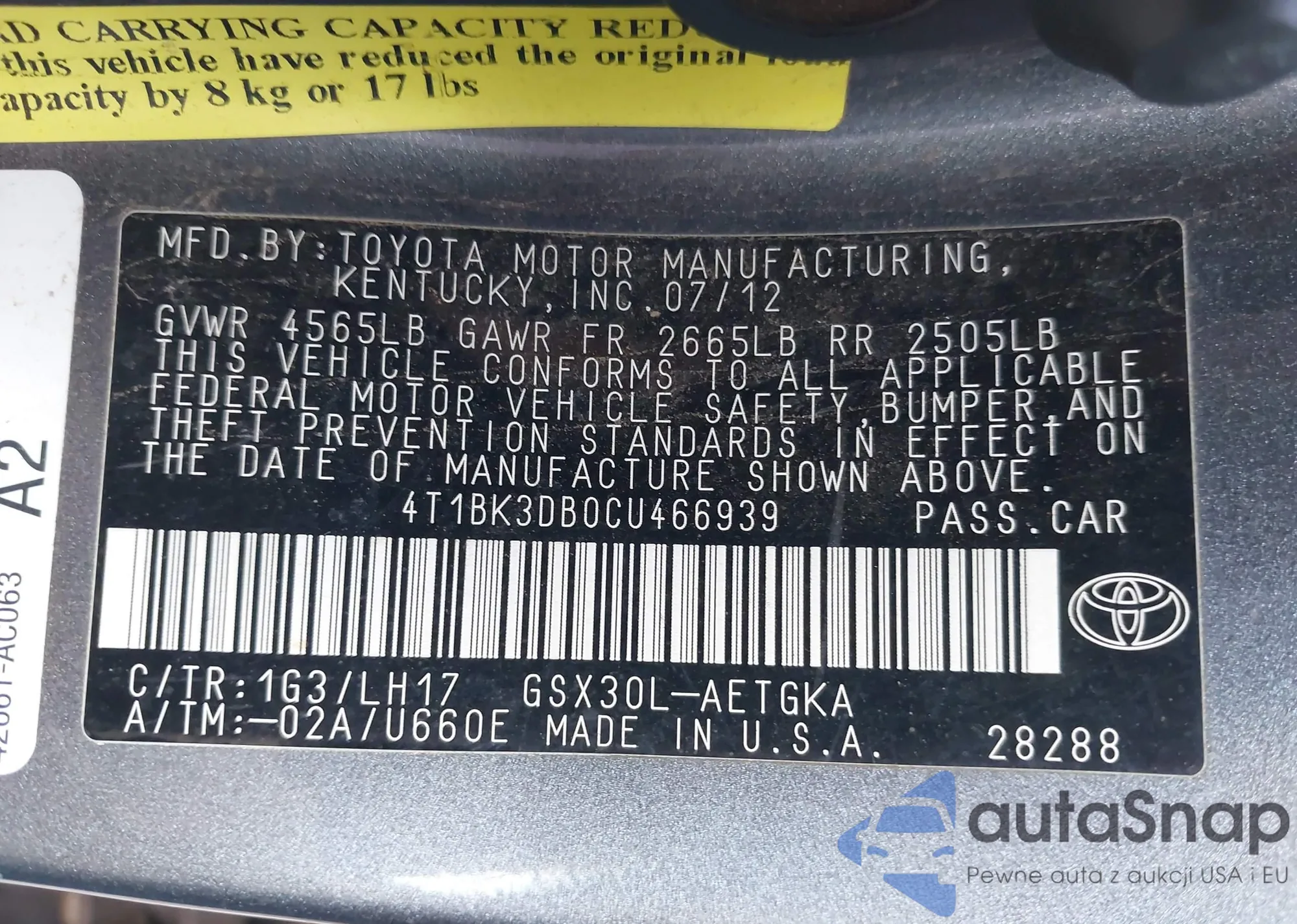 VIN: 4T1BK3DB0CU466939