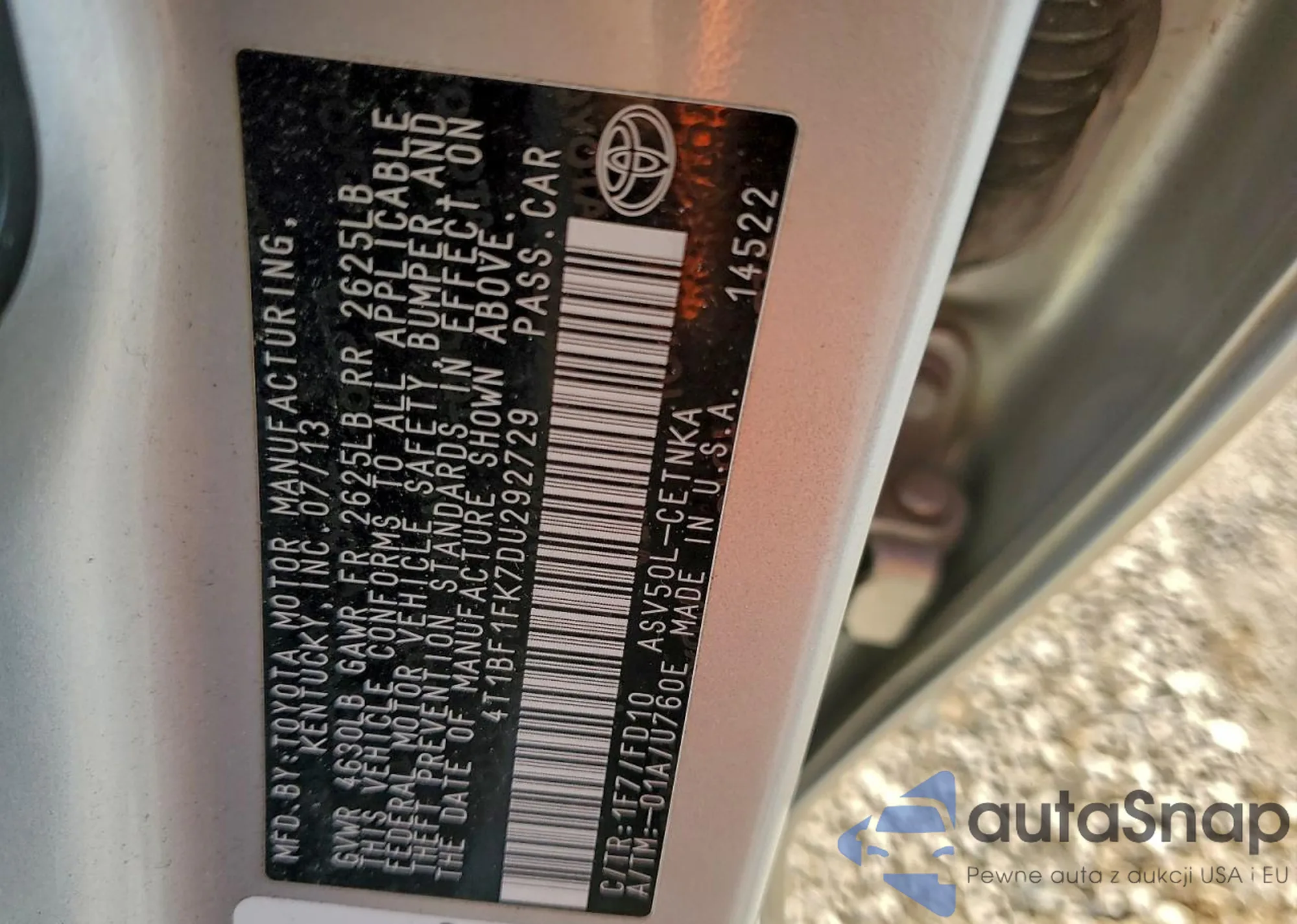 VIN: 4T1BF1FK7CU292729