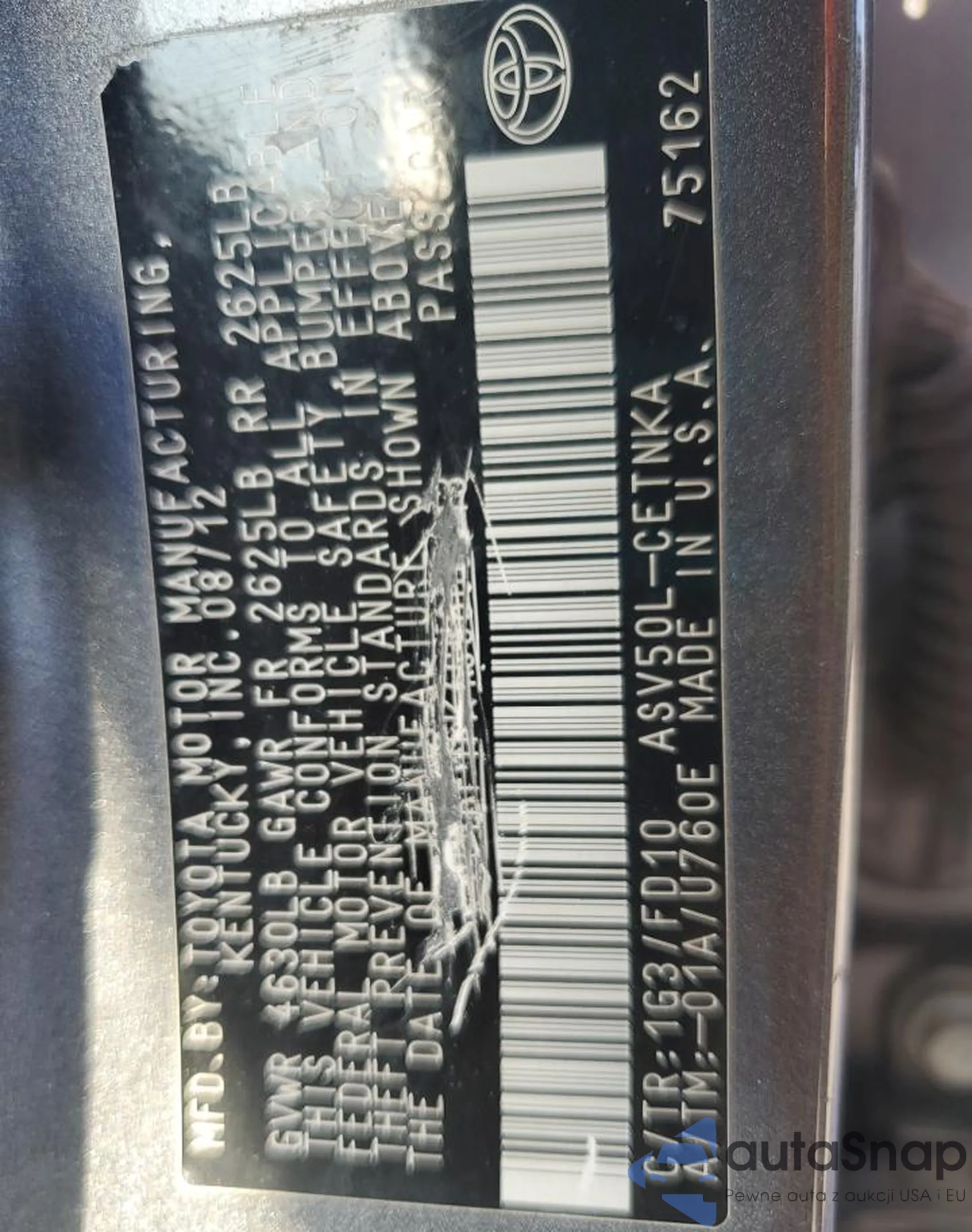 VIN: 4T1BF1FK4CU608313