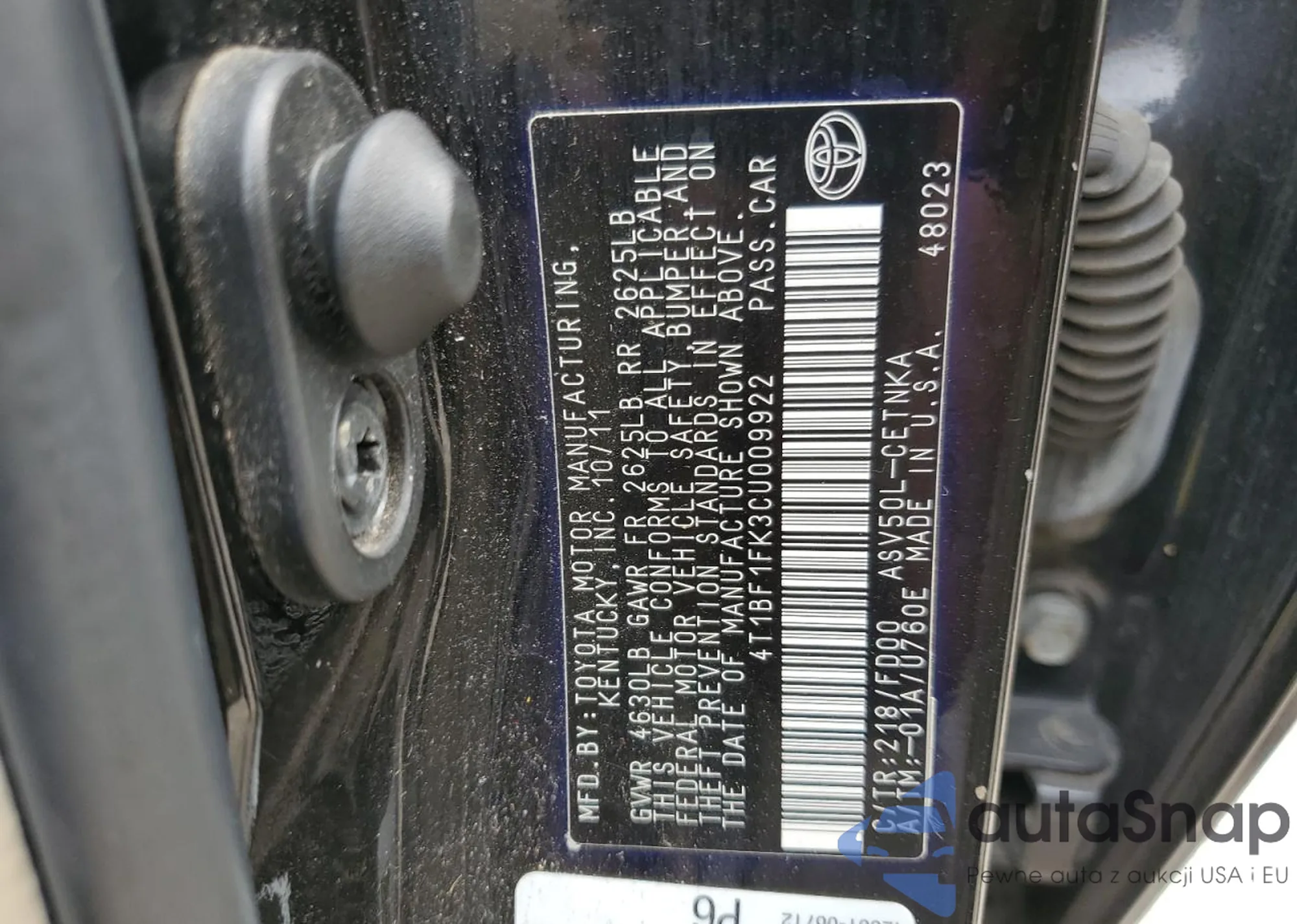 VIN: 4T1BF1FK3CU009922