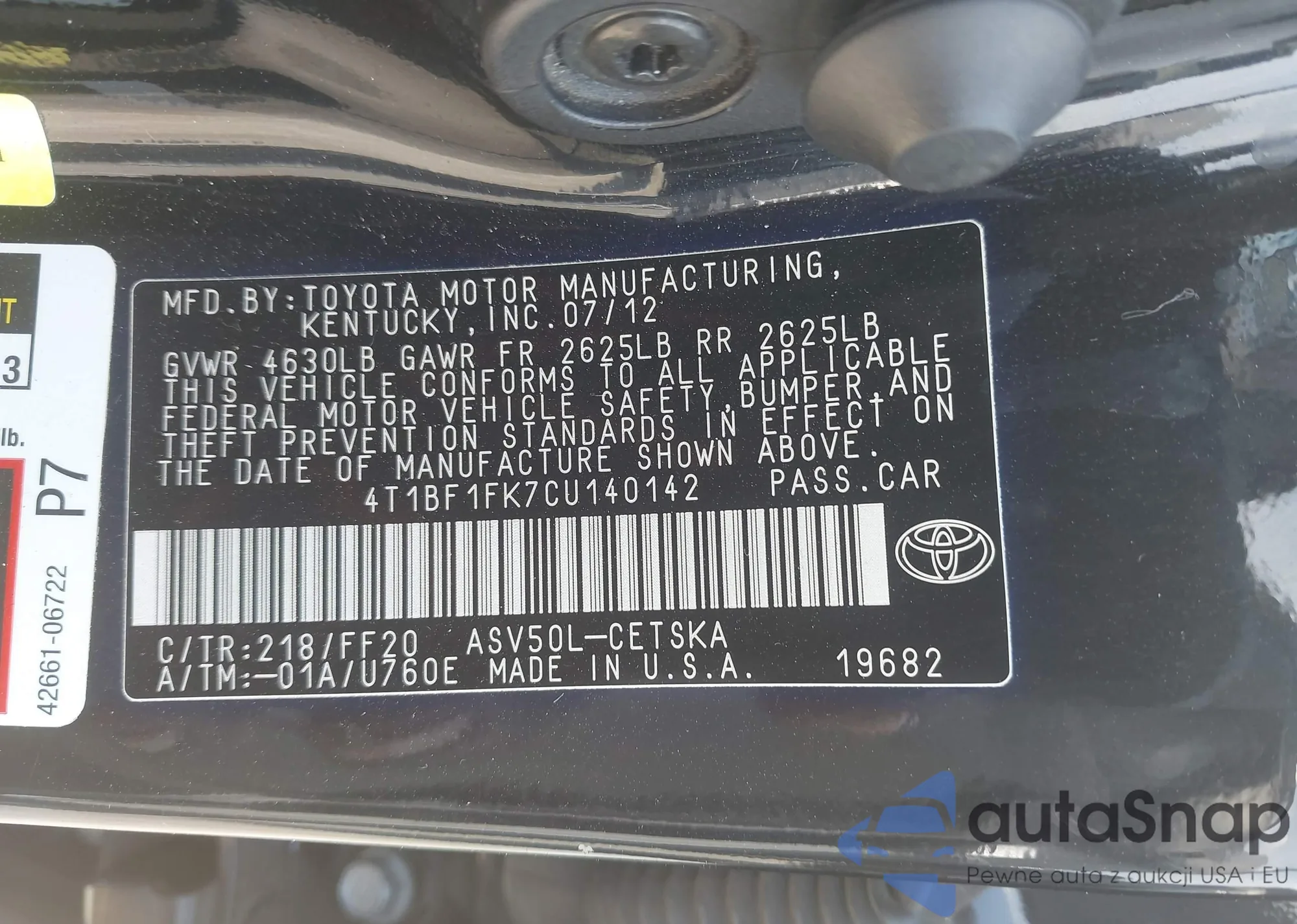 VIN: 4T1BF1FK7CU140142