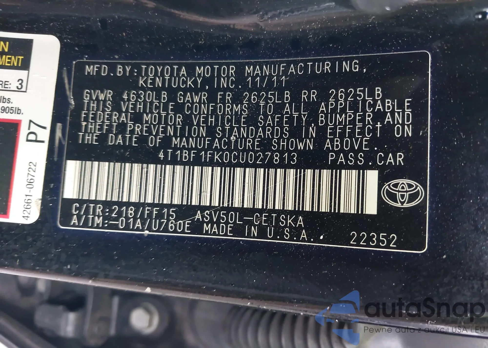 VIN: 4T1BF1FK0CU027813