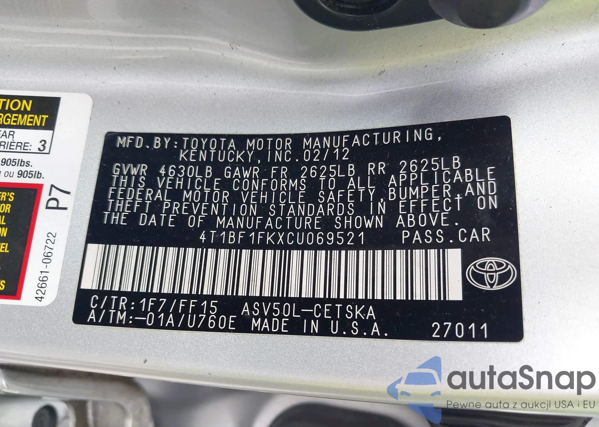 VIN: 4T1BF1FKXCU069521