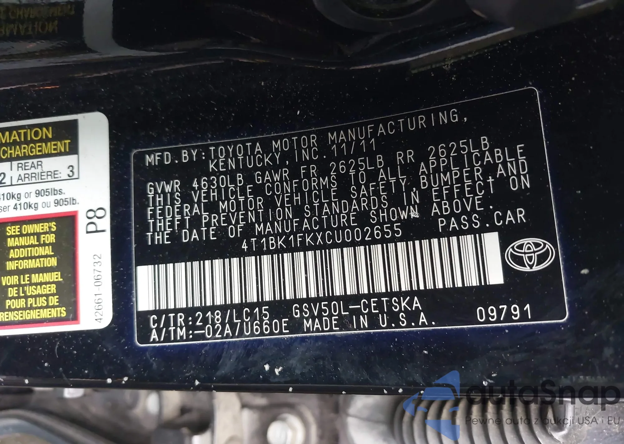 VIN: 4T1BK1FKXCU002655