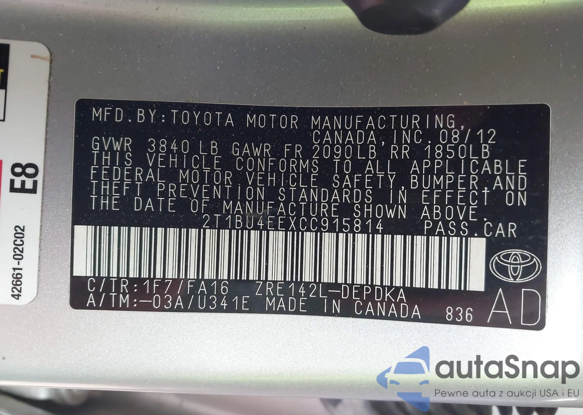 VIN: 2T1BU4EEXCC915814