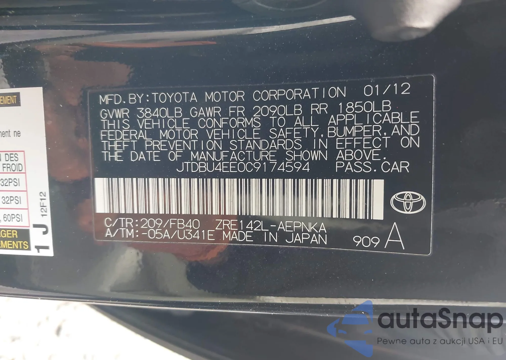 VIN: JTDBU4EE0C9174594