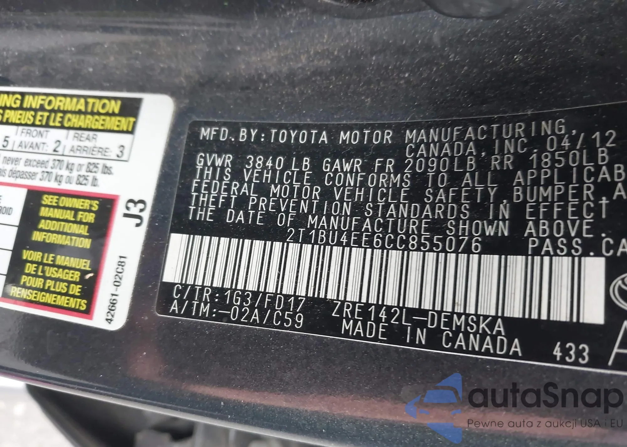 VIN: 2T1BU4EE6CC855076
