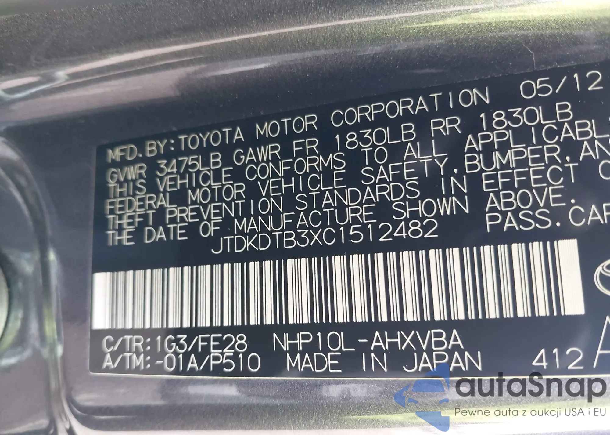 VIN: JTDKDTB3XC1512482