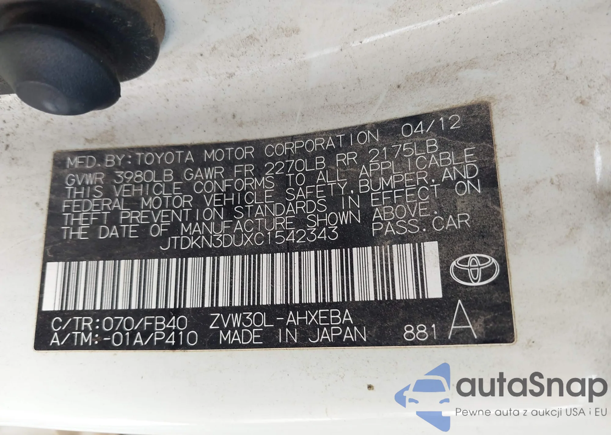 VIN: JTDKN3DUXC1542343
