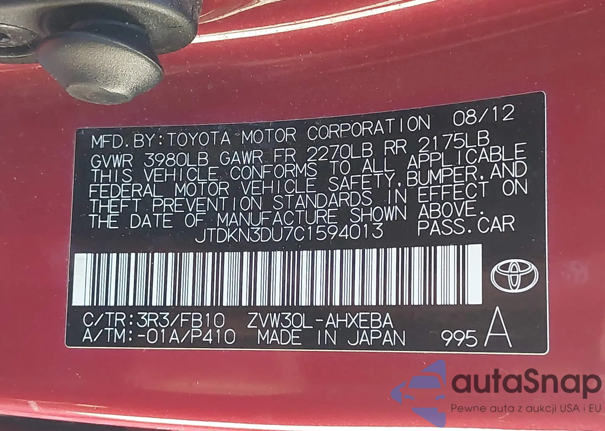 VIN: JTDKN3DU7C1594013