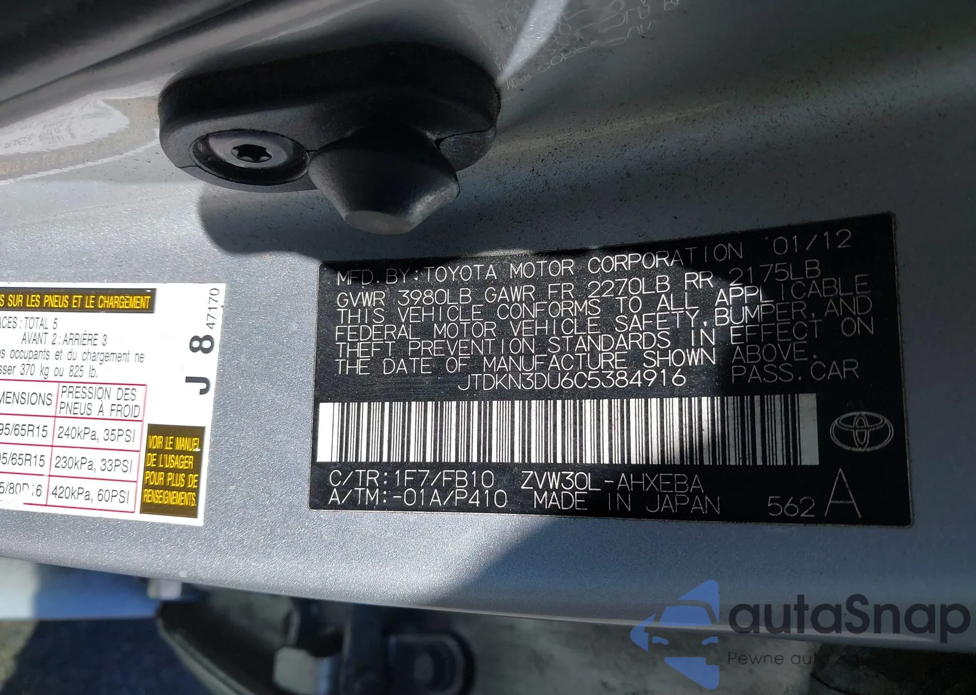 VIN: JTDKN3DU6C5384916