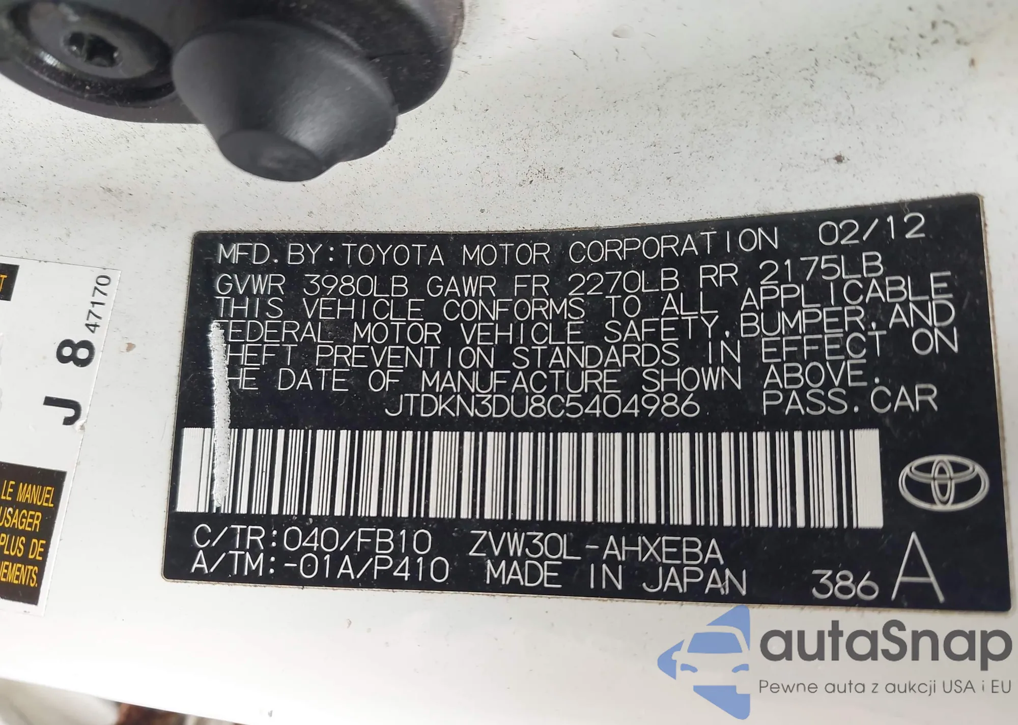 VIN: JTDKN3DU8C5404986