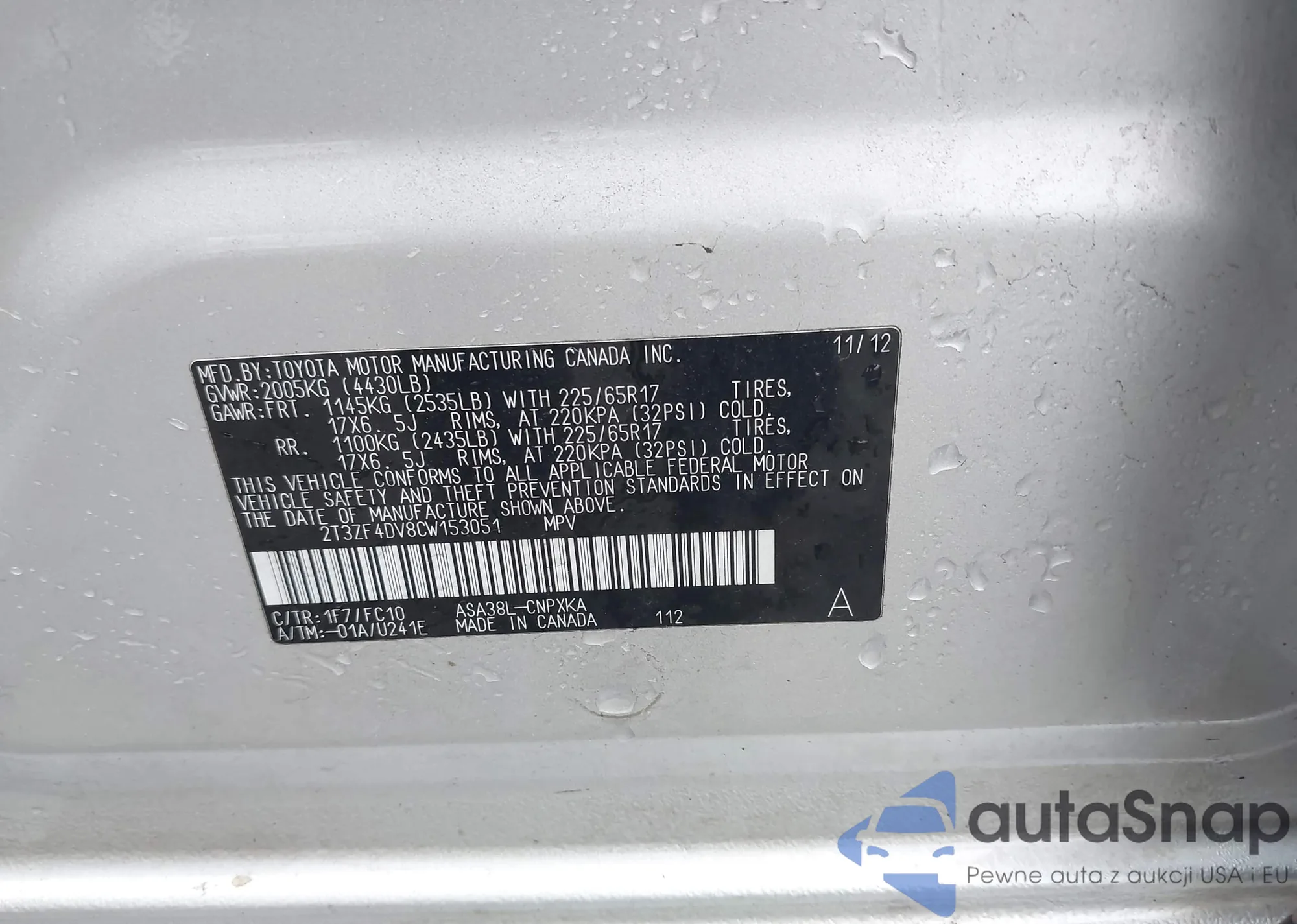 VIN: 2T3ZF4DV8CW153051