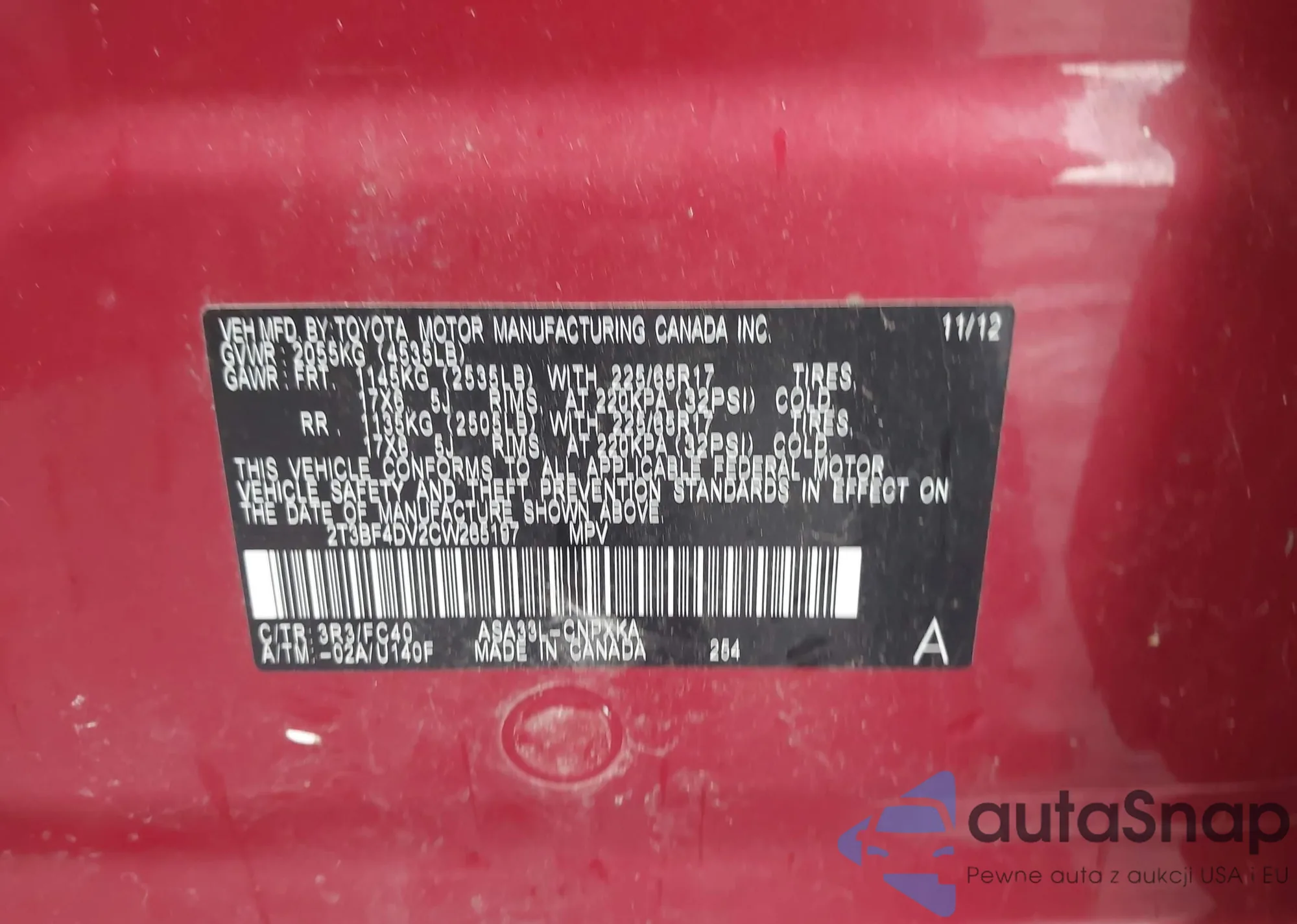 VIN: 2T3BF4DV2CW265197