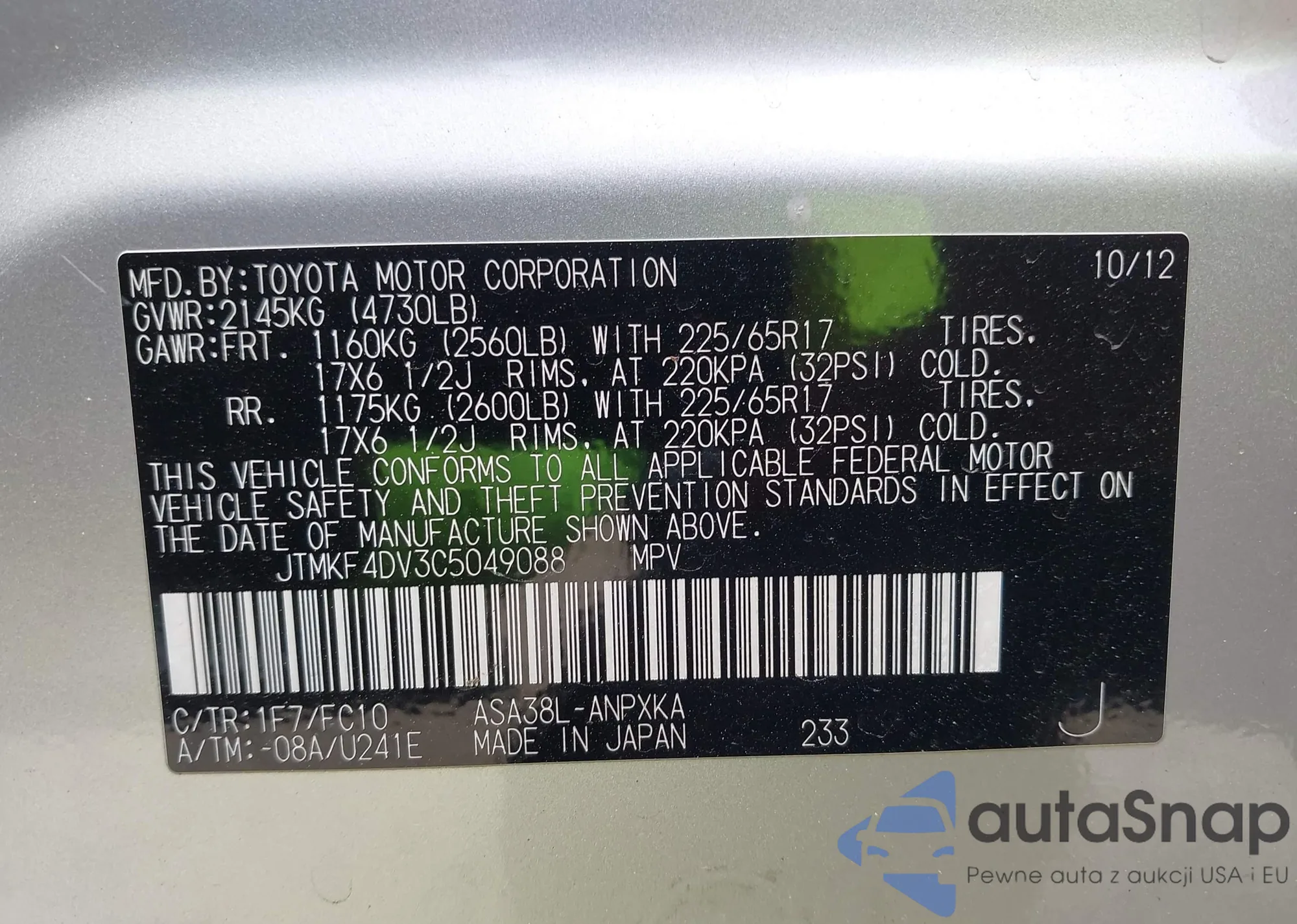 VIN: JTMKF4DV3C5049088