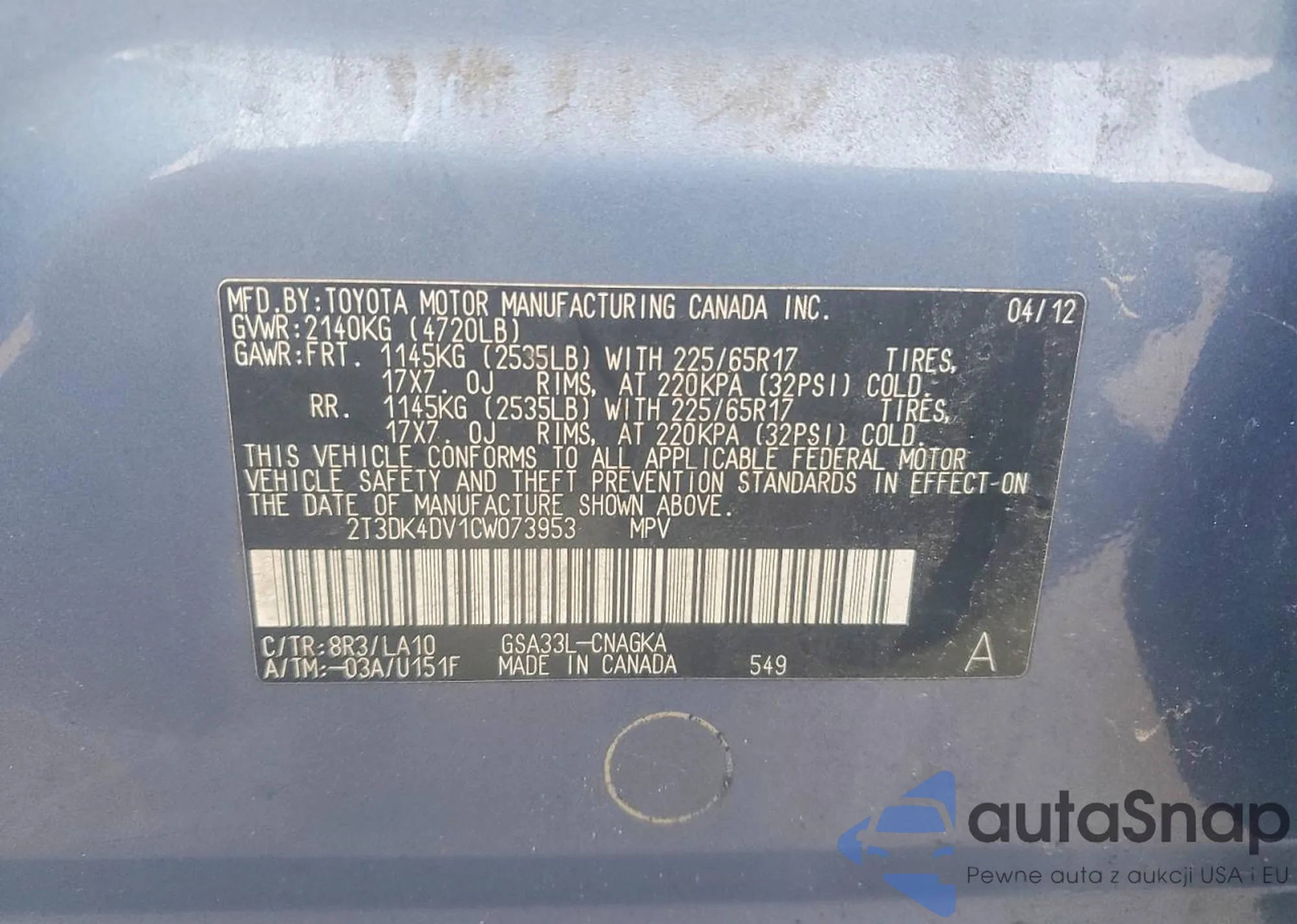 VIN: 2T3DK4DV1CW073953