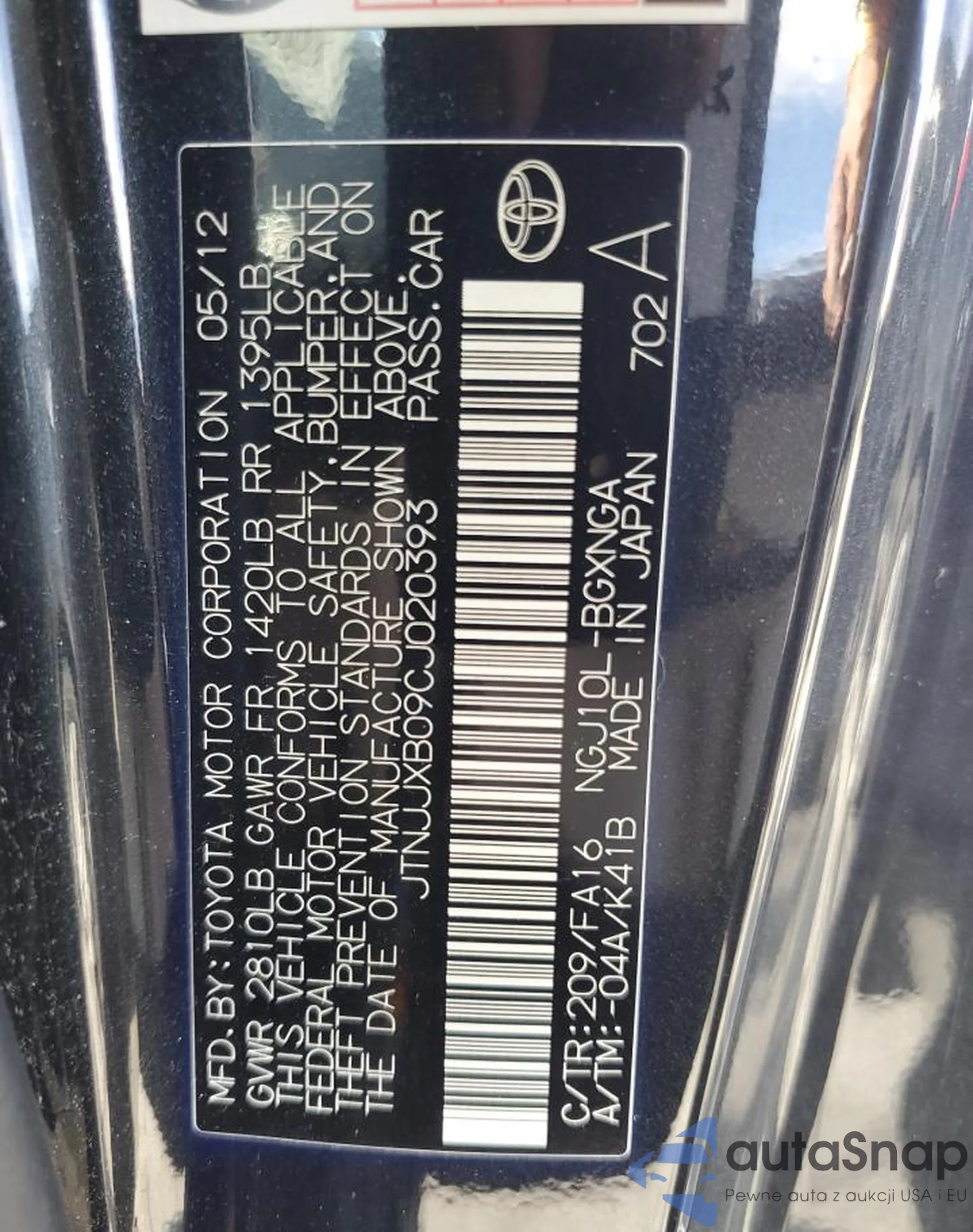 VIN: JTNJJXB09CJ020393
