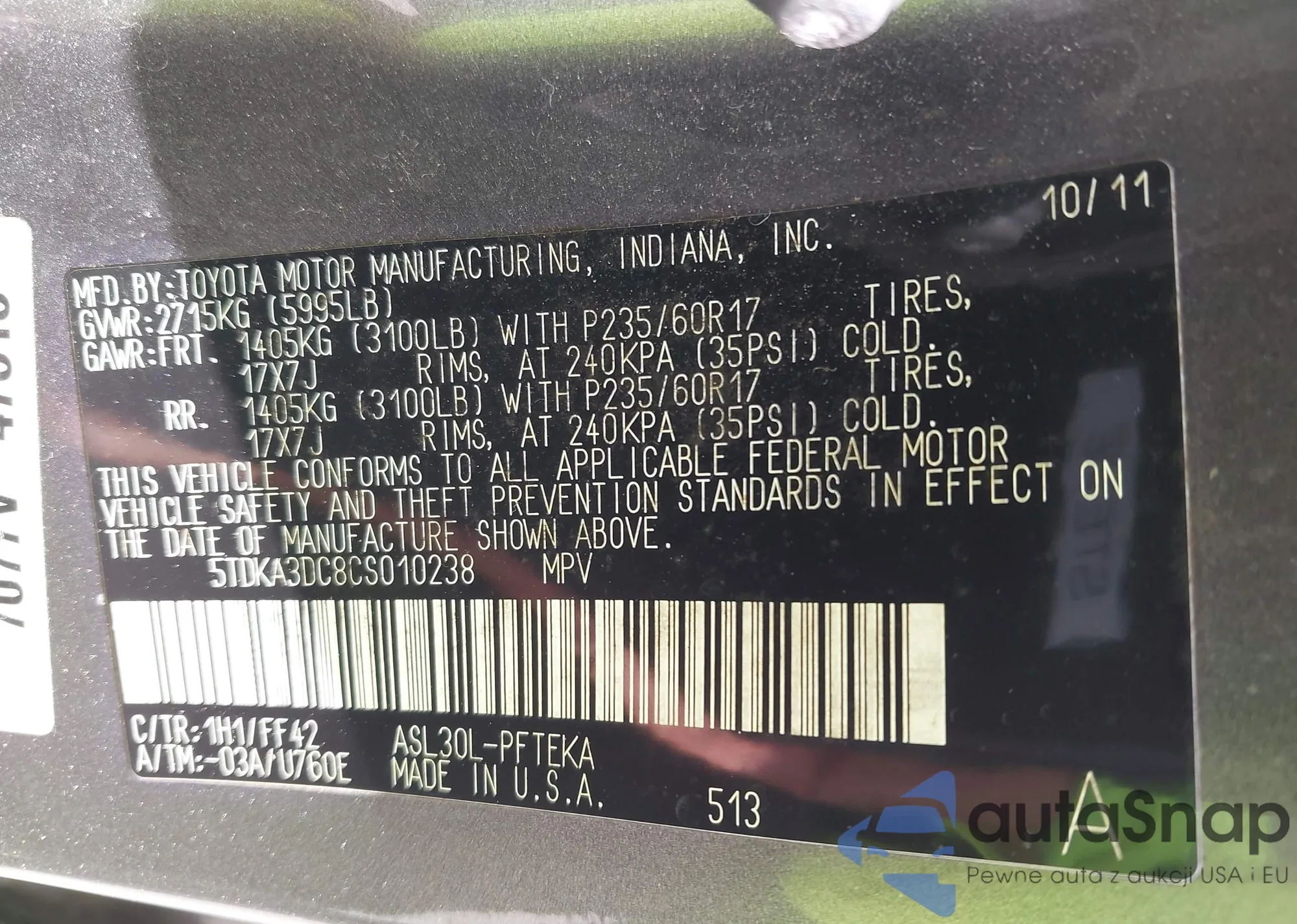 VIN: 5TDKA3DC8CS010238