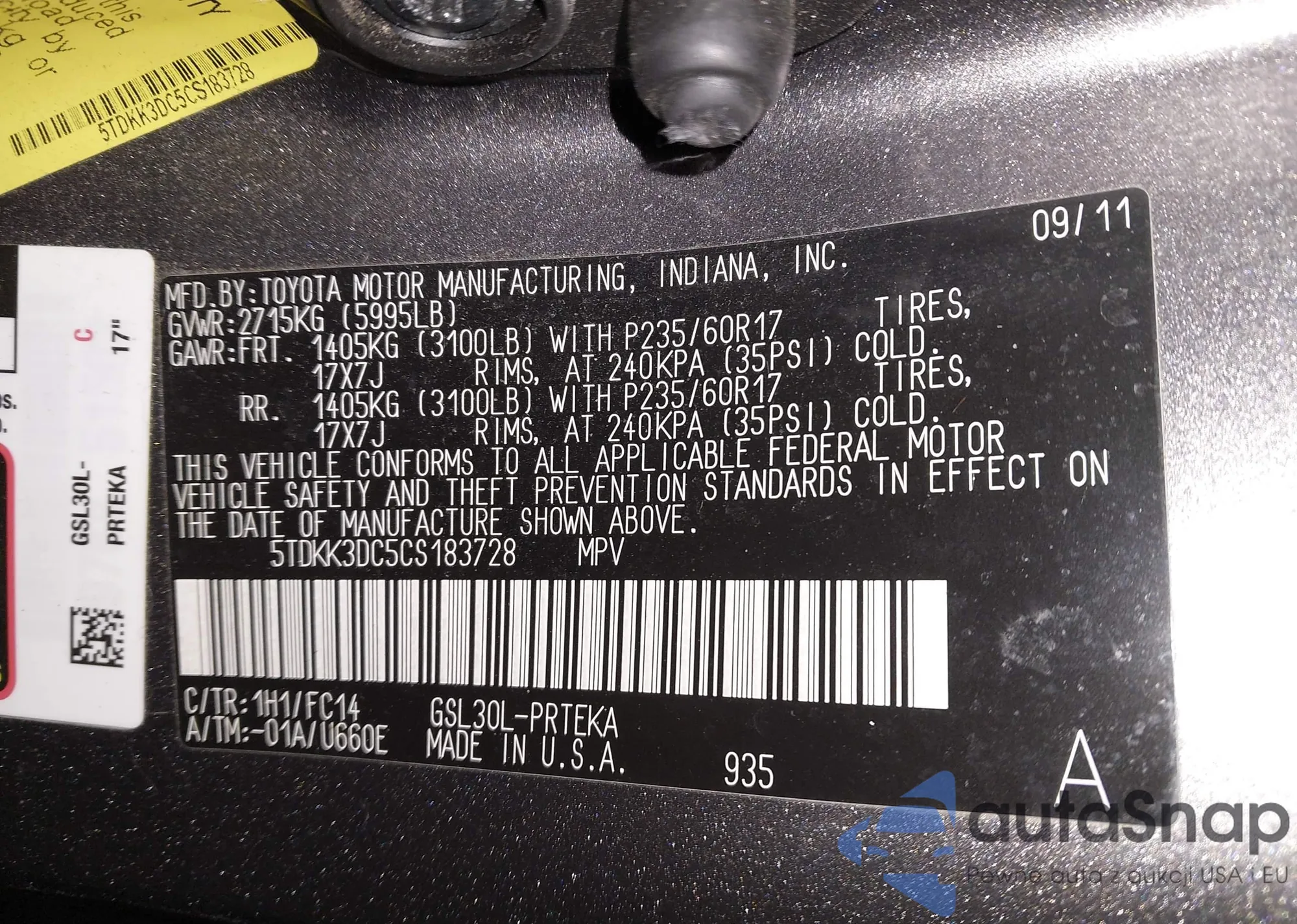 VIN: 5TDKK3DC5CS183728