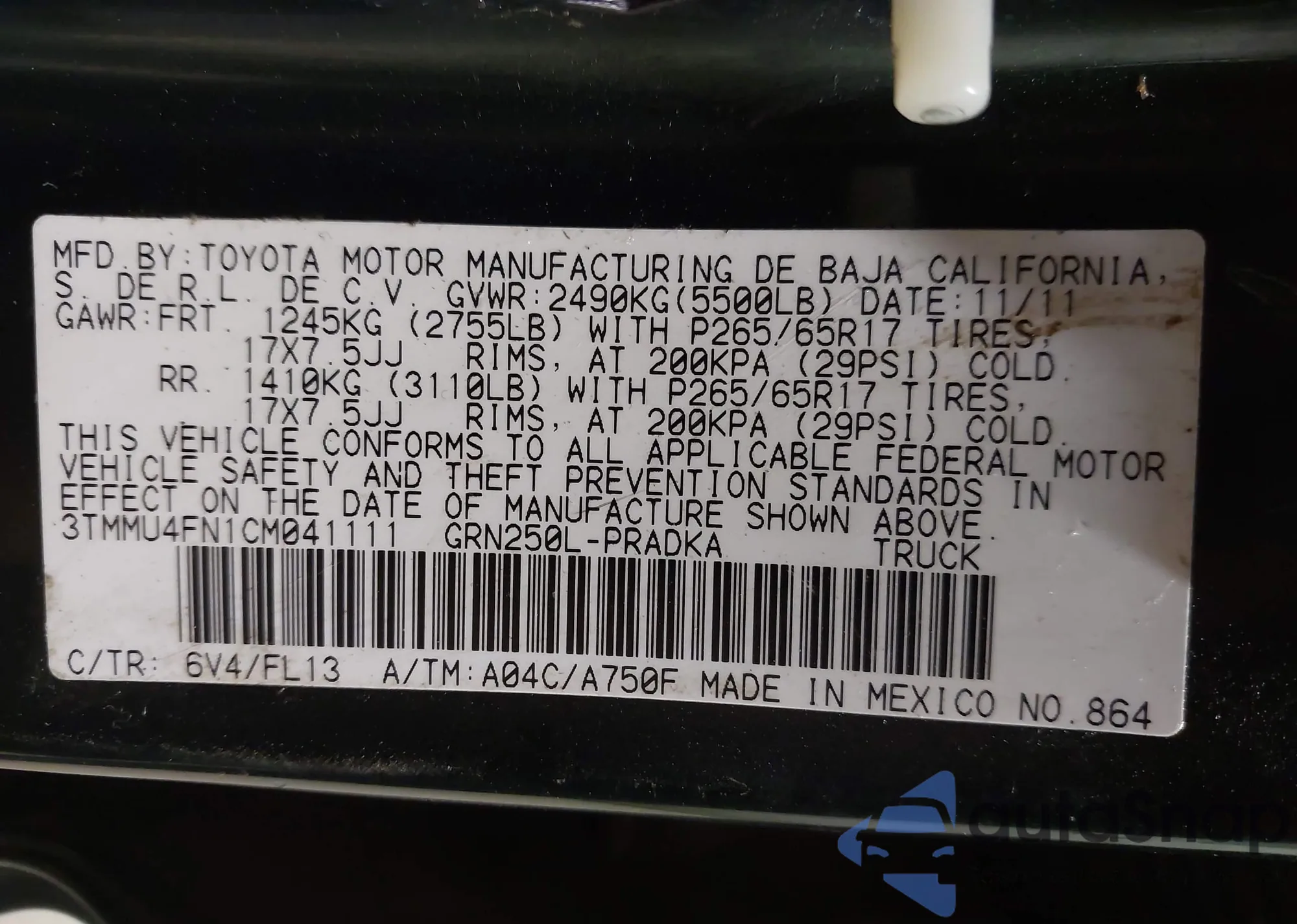 VIN: 3TMMU4FN1CM041111