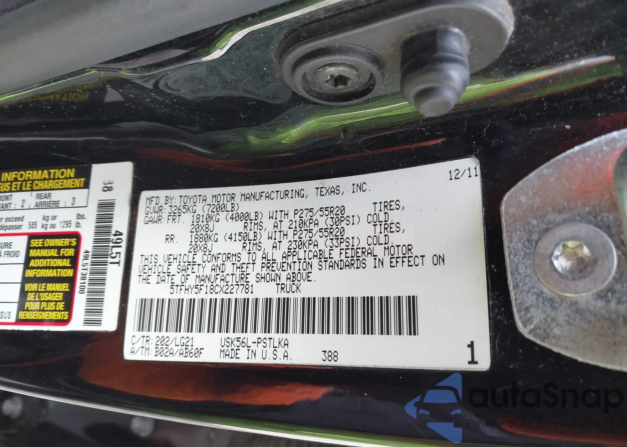 VIN: 5TFHY5F18CX227781
