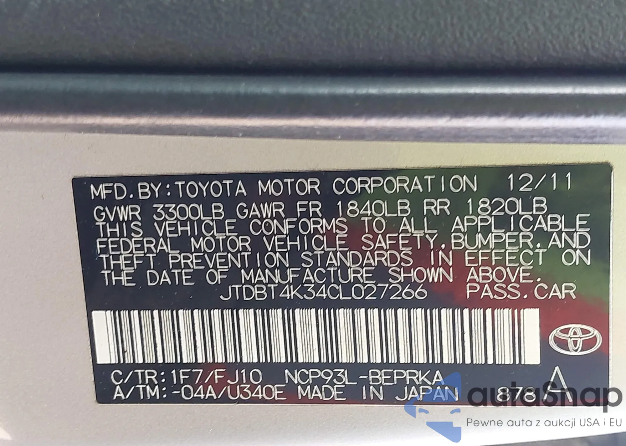 • VIN: JTDBT4K34CL027266