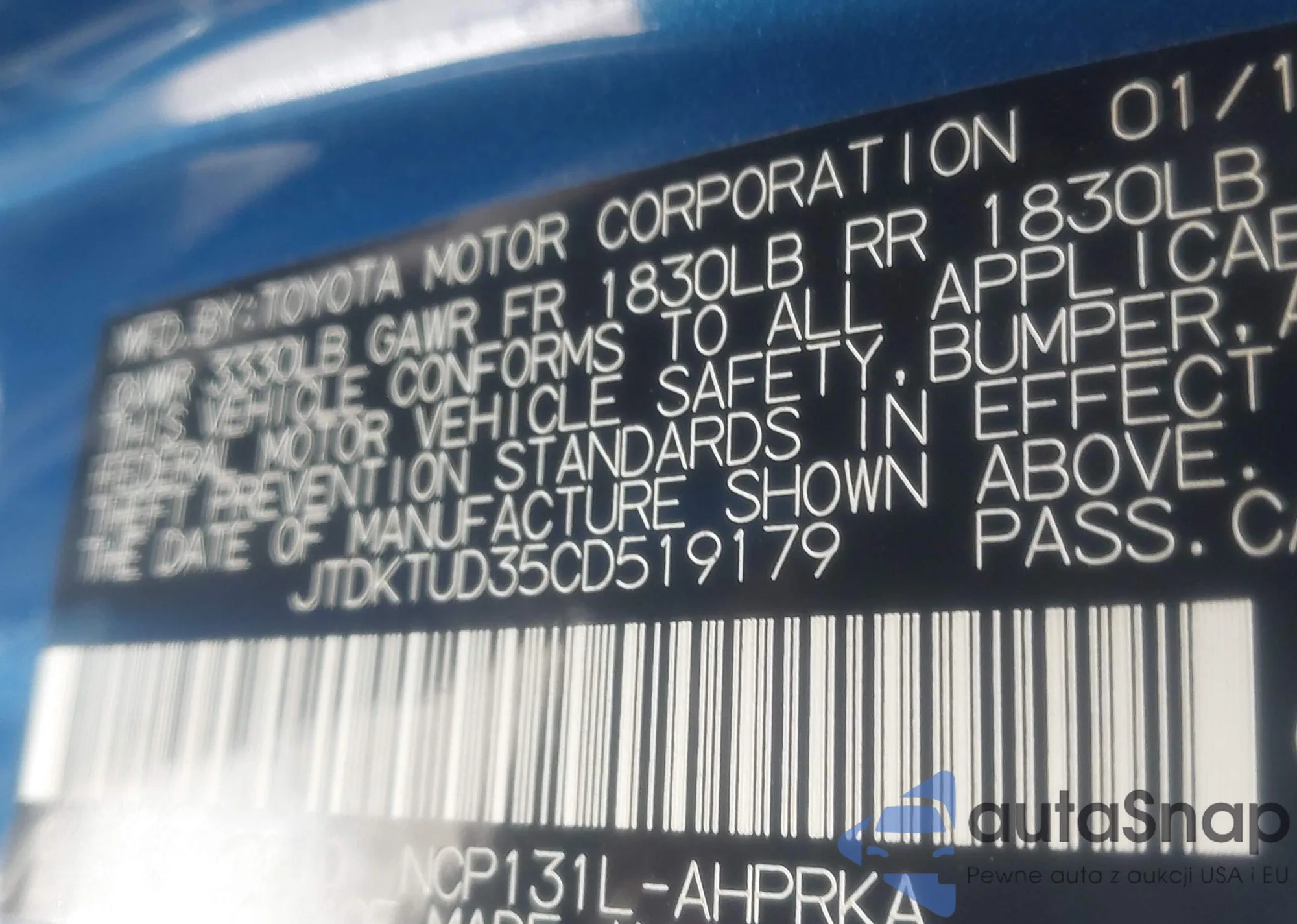 VIN: JTDKTUD35CD519179