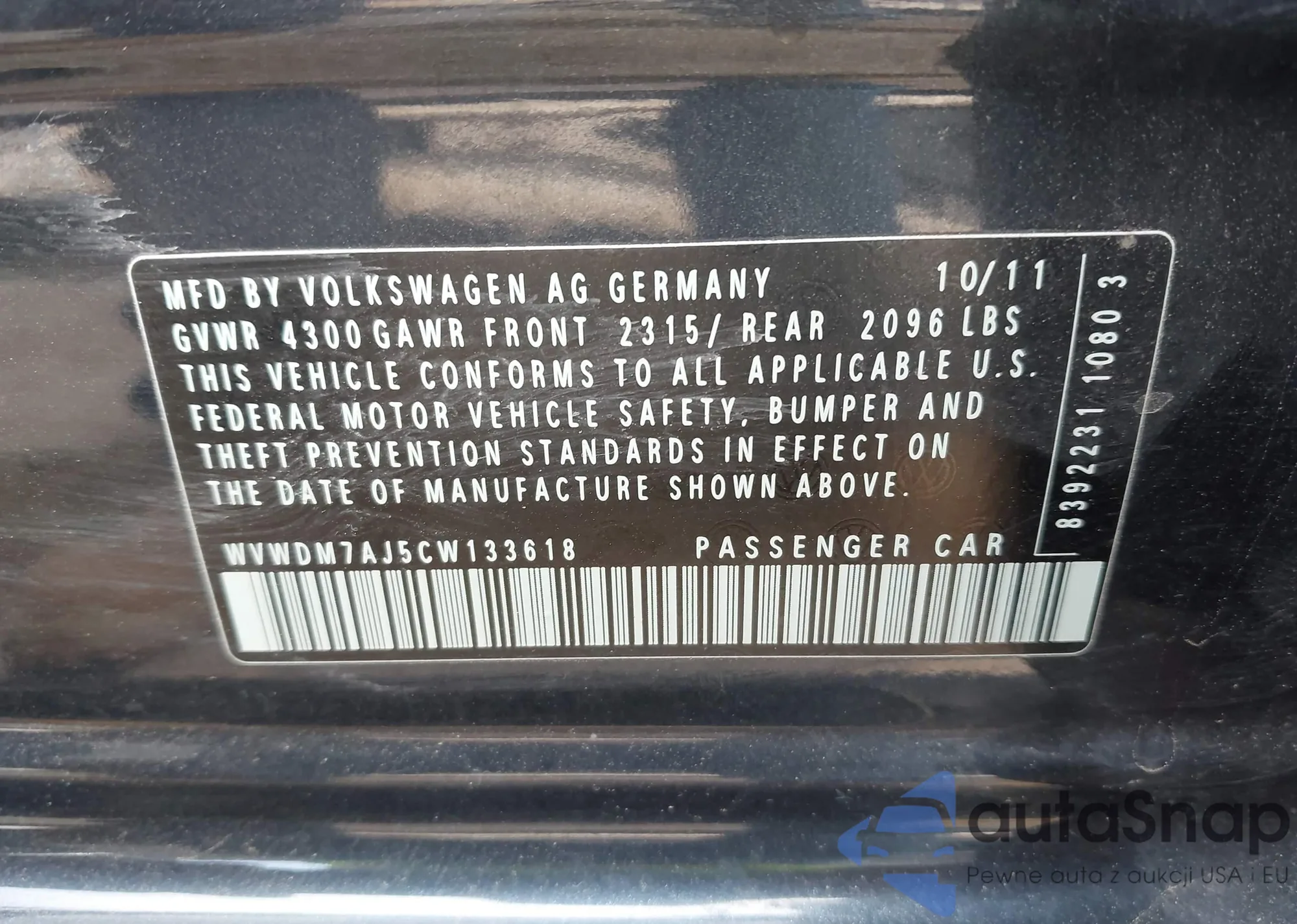 VIN: WVWDM7AJ5CW133618