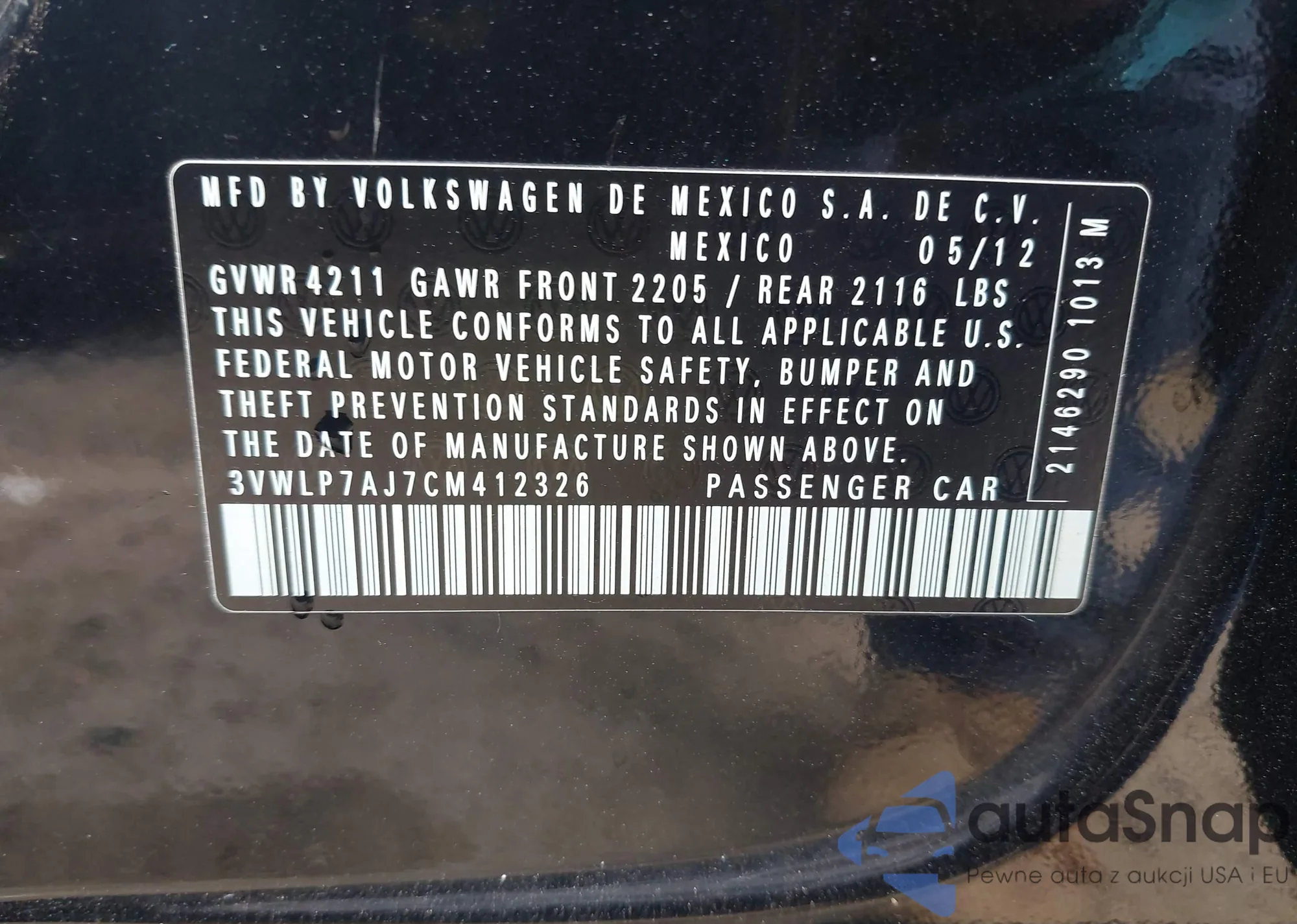 VIN: 3VWLP7AJ7CM412326