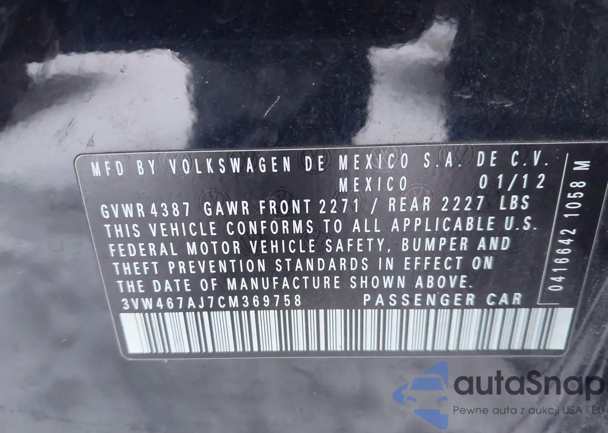 VIN: 3VW467AJ7CM369758