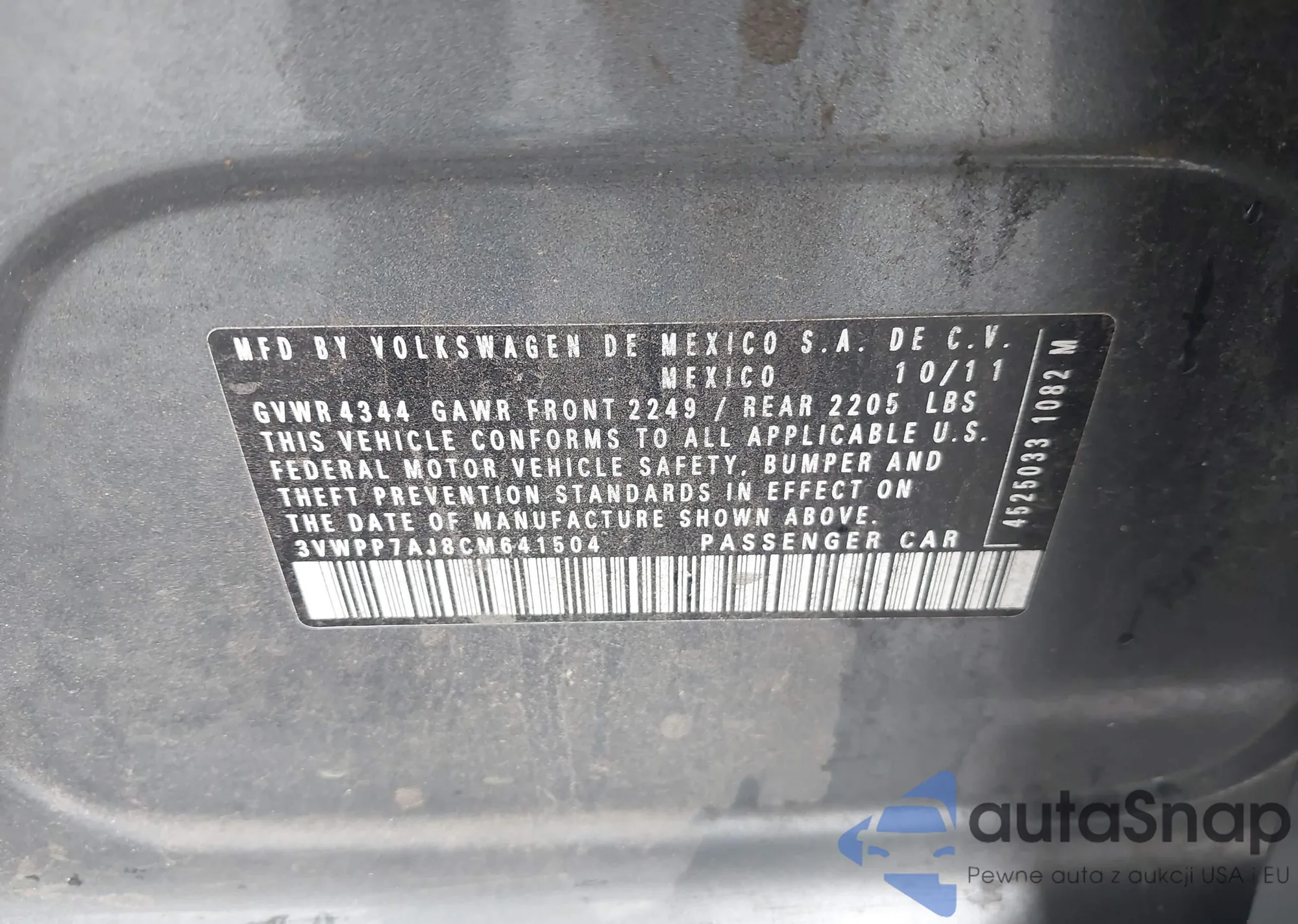 Автомобиль Volkswagen Jetta 2012 (VIN 3VWPP7AJ8CM641504) ранее не участвовал в торгах. Документы чистые, пробег соответствует или ниже среднего по рынку. Продаётся страховой компанией — рекомендуем покупку. Доставка в порт займет около 6–8 недель.