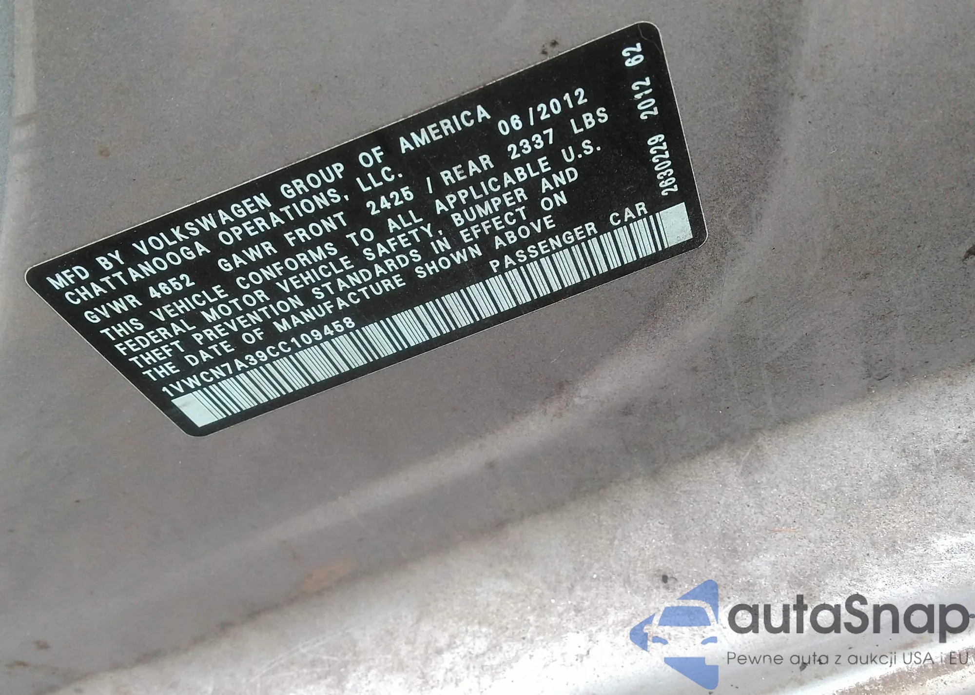 VIN: 1VWCN7A39CC109458