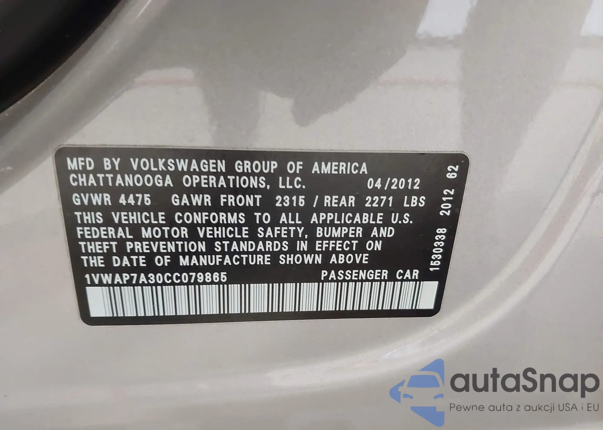 VIN: 1VWAP7A30CC079865