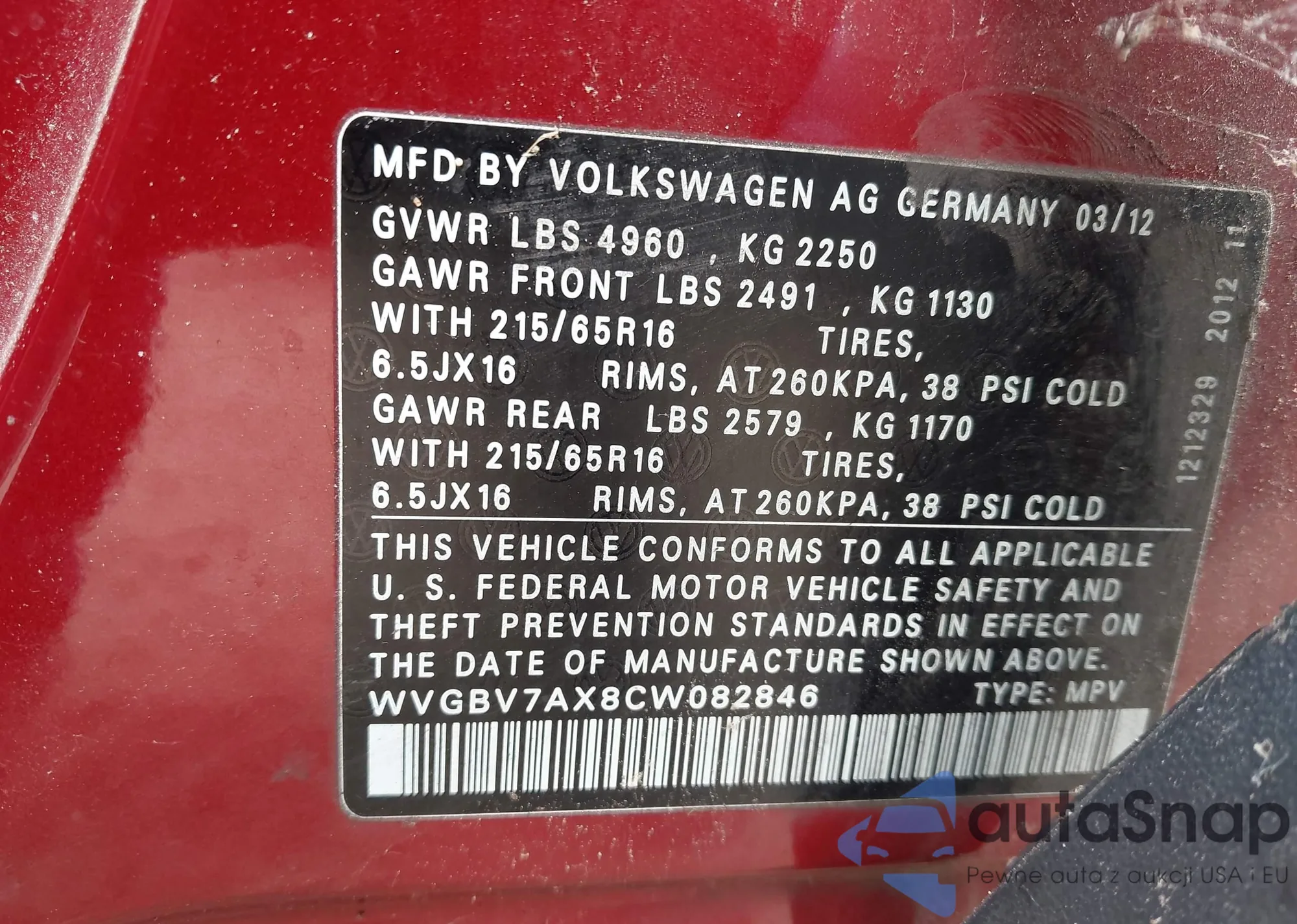 VIN: WVGBV7AX8CW082846