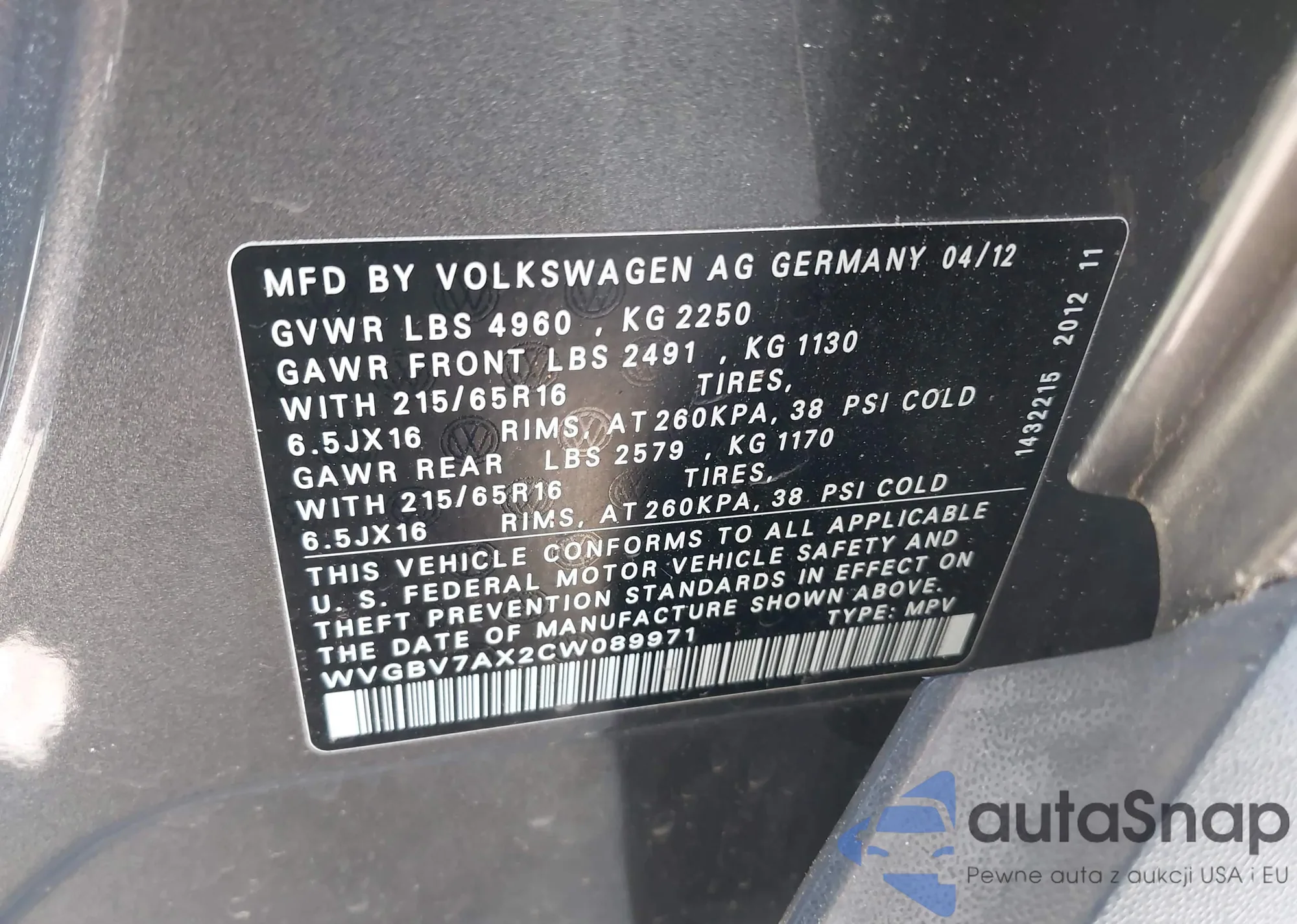 VIN: WVGBV7AX2CW089971