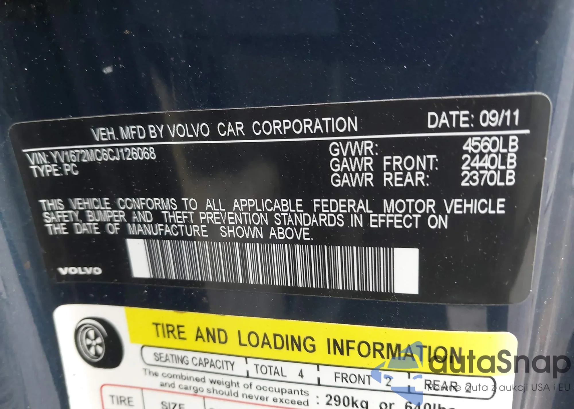 VIN: YV1672MC6CJ126068