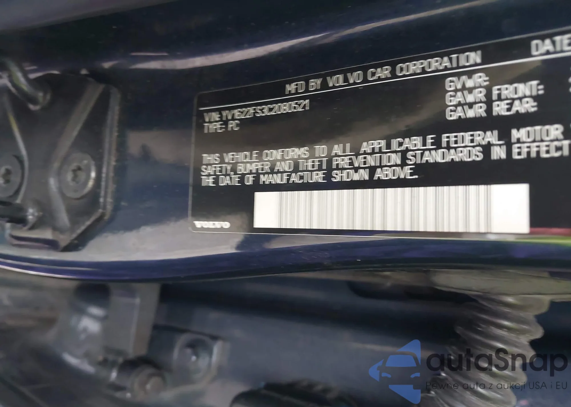 VIN: YV1622FS3C2080521