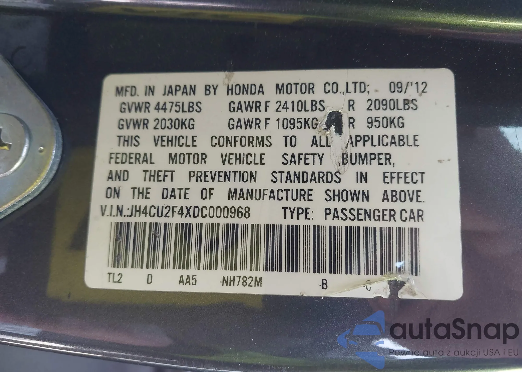 • VIN: JH4CU2F4XDC000968