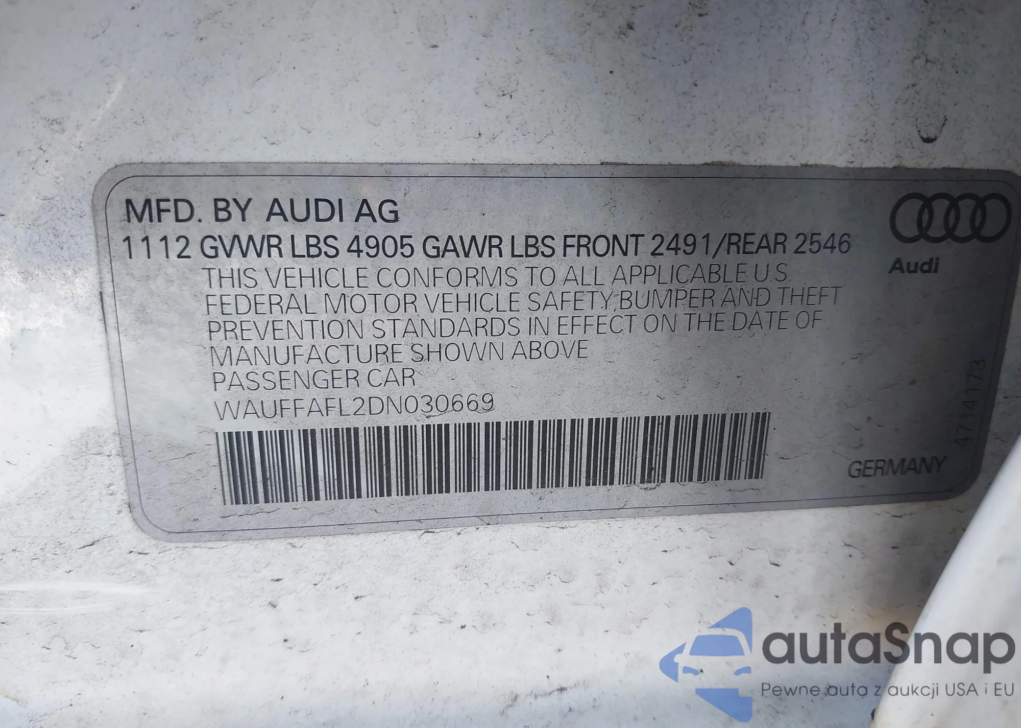 VIN: WAUFFAFL2DN030669
