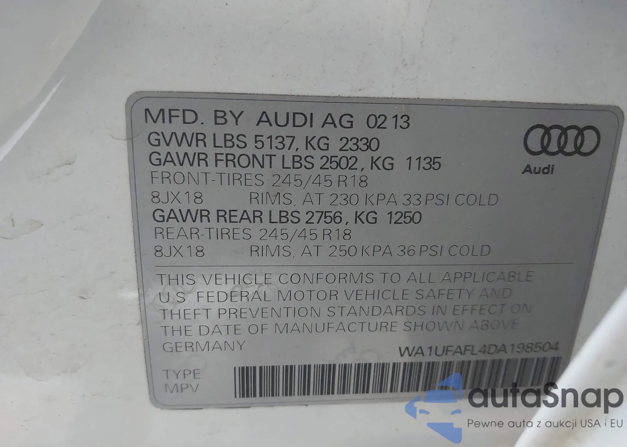 VIN: WA1UFAFL4DA198504