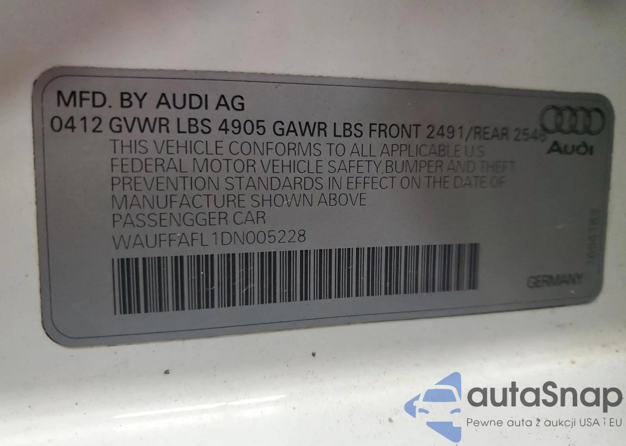 VIN: WAUFFAFL1DN005228