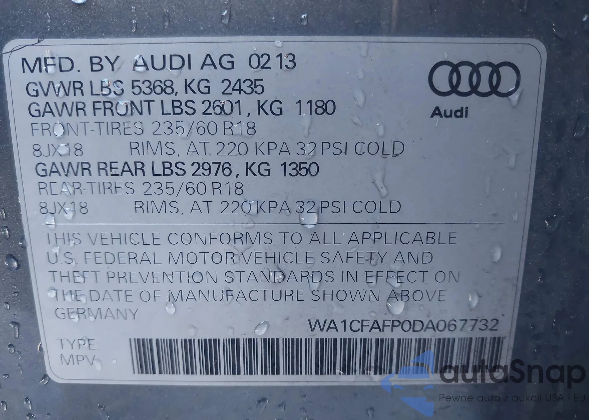 VIN: WA1CFAFP0DA067732