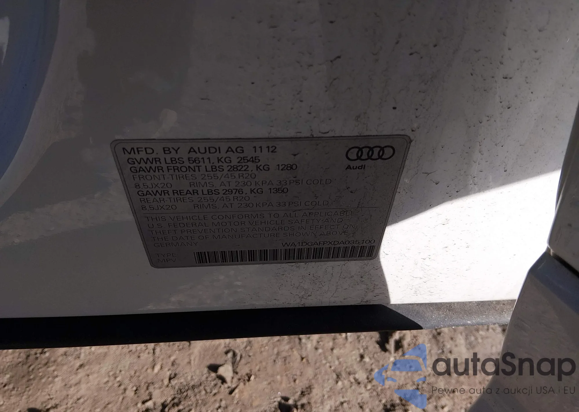 • VIN: WA1DGAFPXDA035100