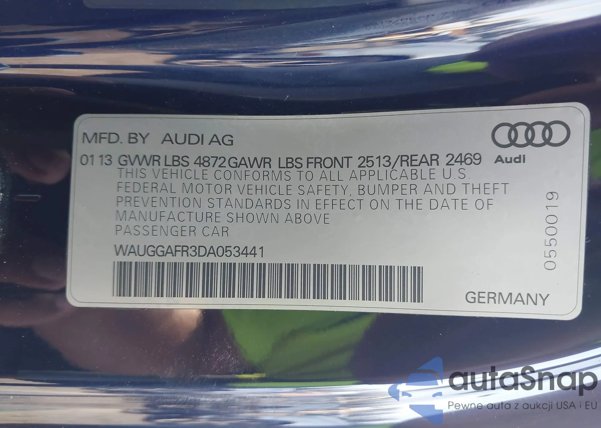 • VIN: WAUGGAFR3DA053441